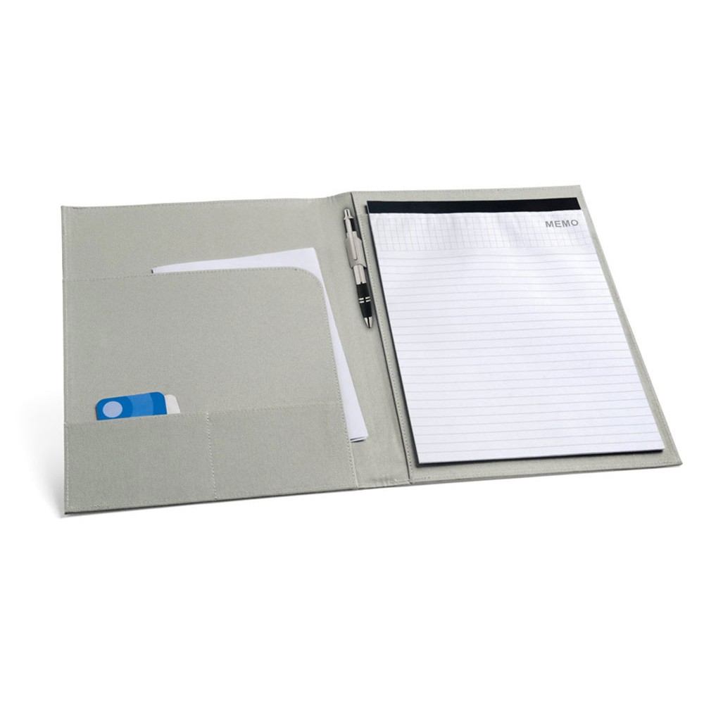 Папка A4 из 600D с застежкой на резинке. Папка имеет блокнот из 20 листов в линейку, 3 внутренних кармана и держатель для шариковой ручки (ручка не входит в комплект). 240 x 325 x 15 мм. Вид нанесения, рекомендуемый поставщиком: гравировка, трансфер.