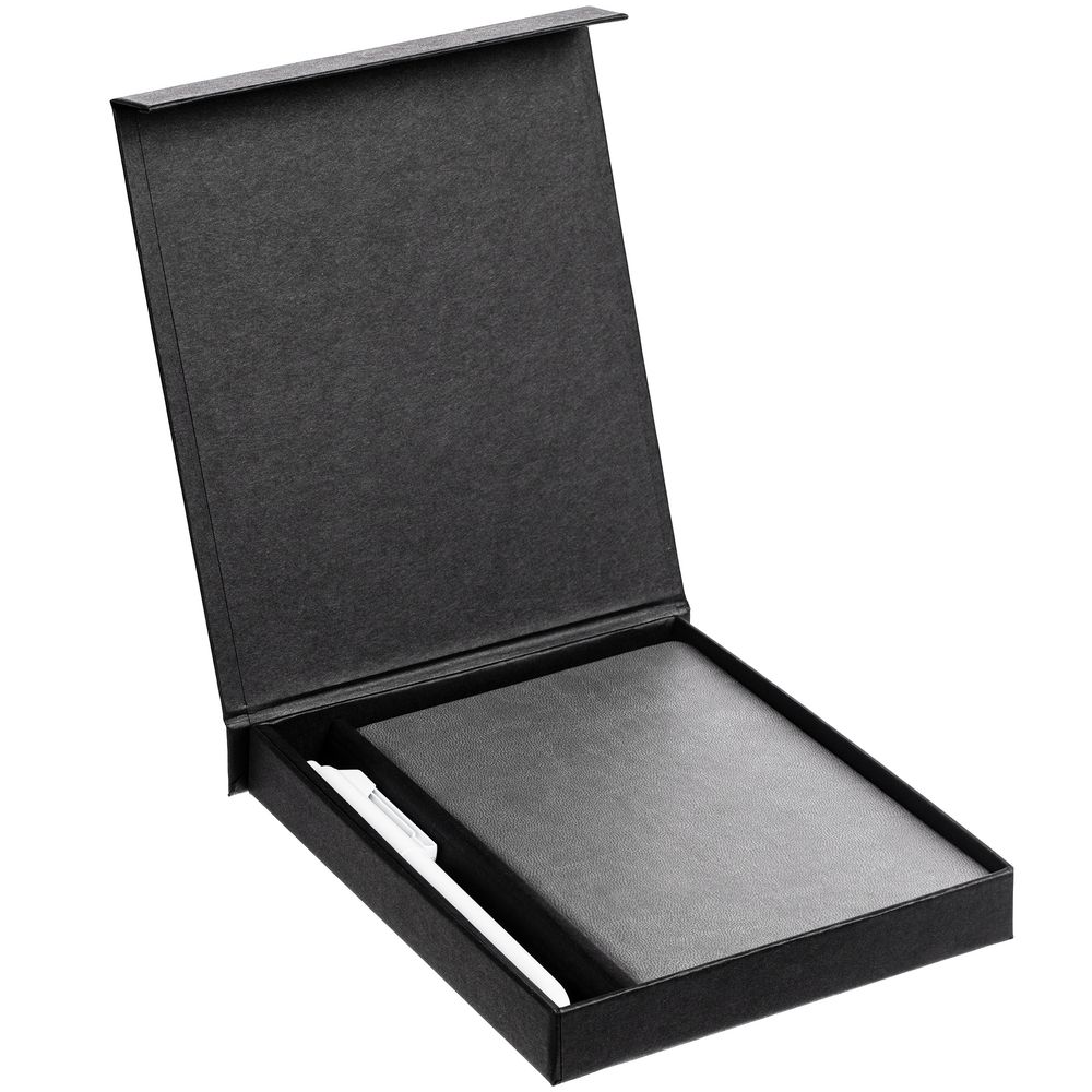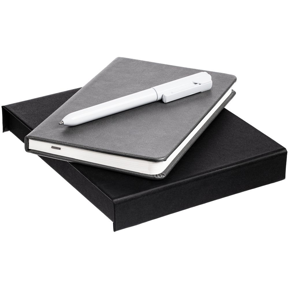 • блокнот - искусственная кожа; ручка - пластик; коробка - переплетный картон