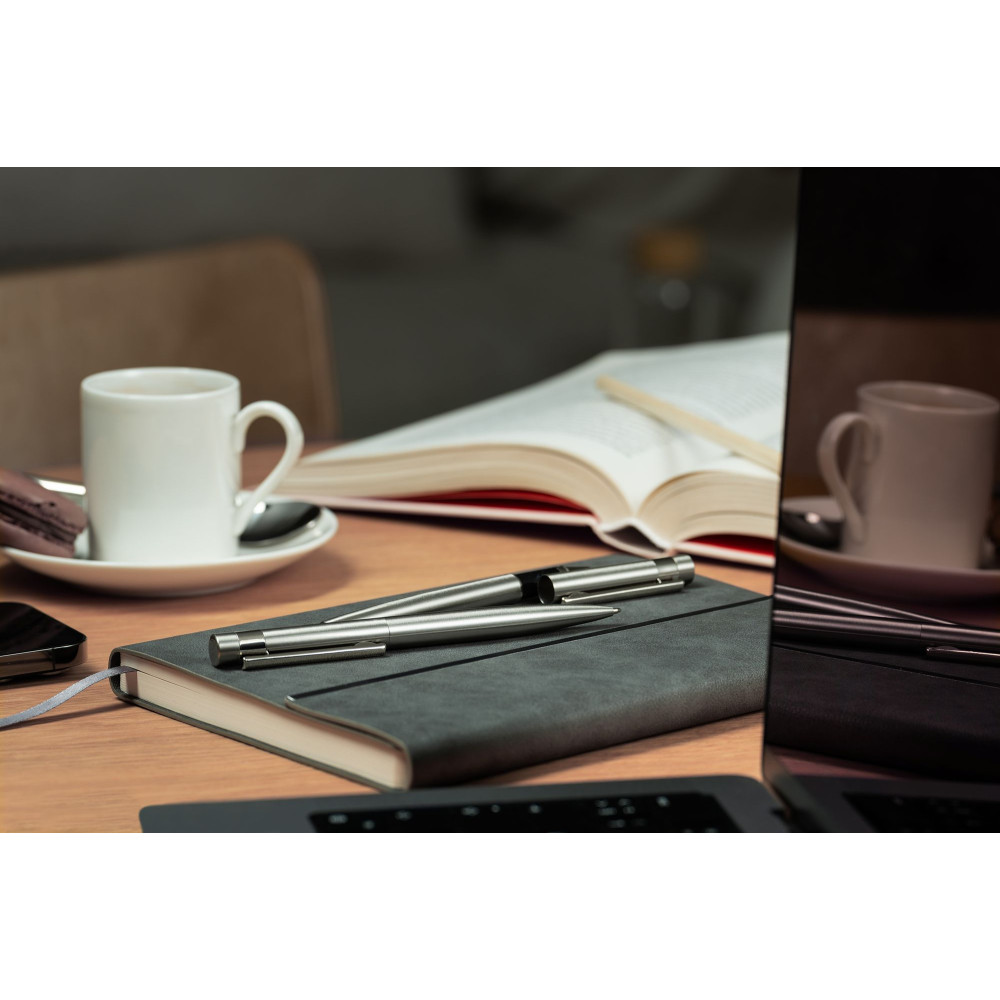 Ручка и роллер Platero из переработанной вторичной стали в изящном матовом корпусе — вклад в экологию и сокращение углеродного следа. Уверенность в себе и в будущем.