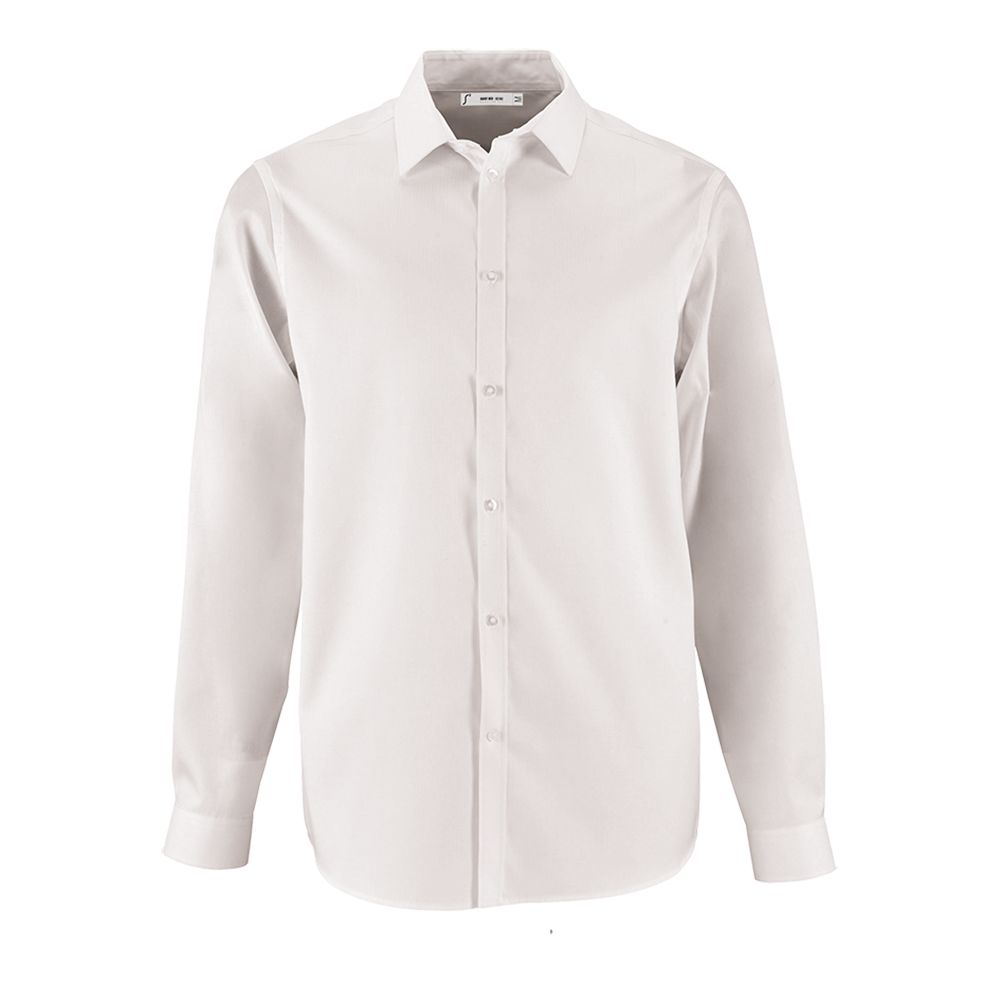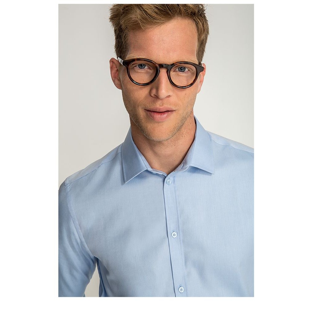 Рубашка прямого кроя с маленьким воротником, планка с 7 пуговицами. Выполнена из фактурной ткани, узор «елочка».