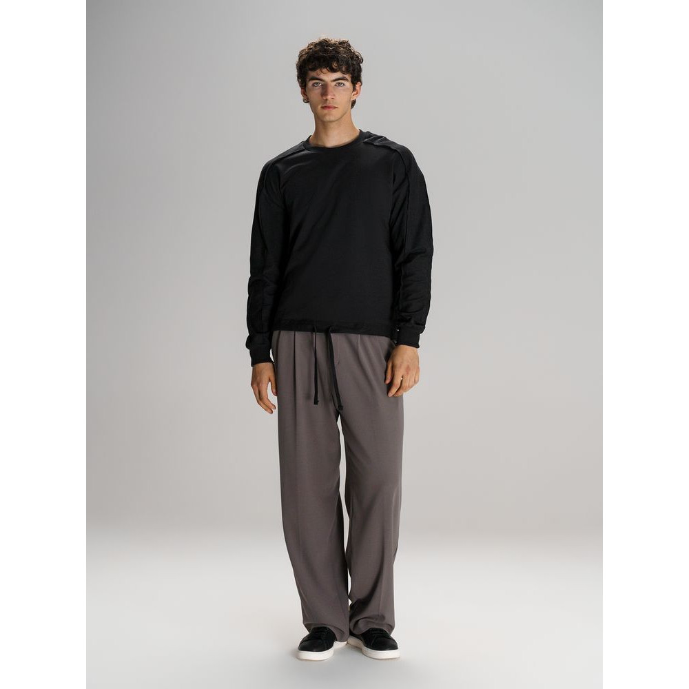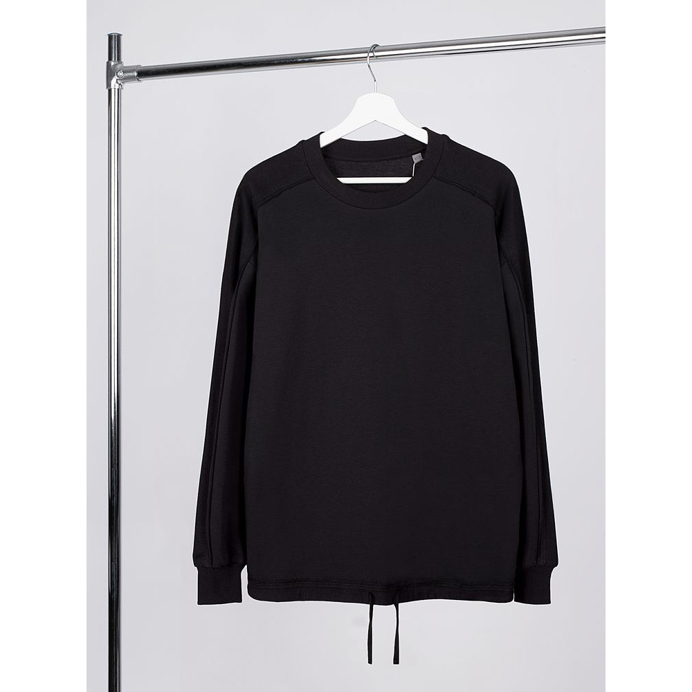 Свитшот унисекс оригинального пошива вдохнет новую жизнь в повседневный гардероб и добавит стильную нотку легкой небрежности в образ. Особая конструкция, где часть деталей — плечи и рукава — вывернута наизнанку, создает необычный притягательный эффект.