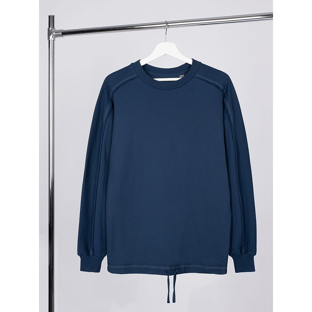 Свитшот унисекс оригинального пошива вдохнет новую жизнь в повседневный гардероб и добавит стильную нотку легкой небрежности в образ. Особая конструкция, где часть деталей — плечи и рукава — вывернута наизнанку, создает необычный притягательный эффект.