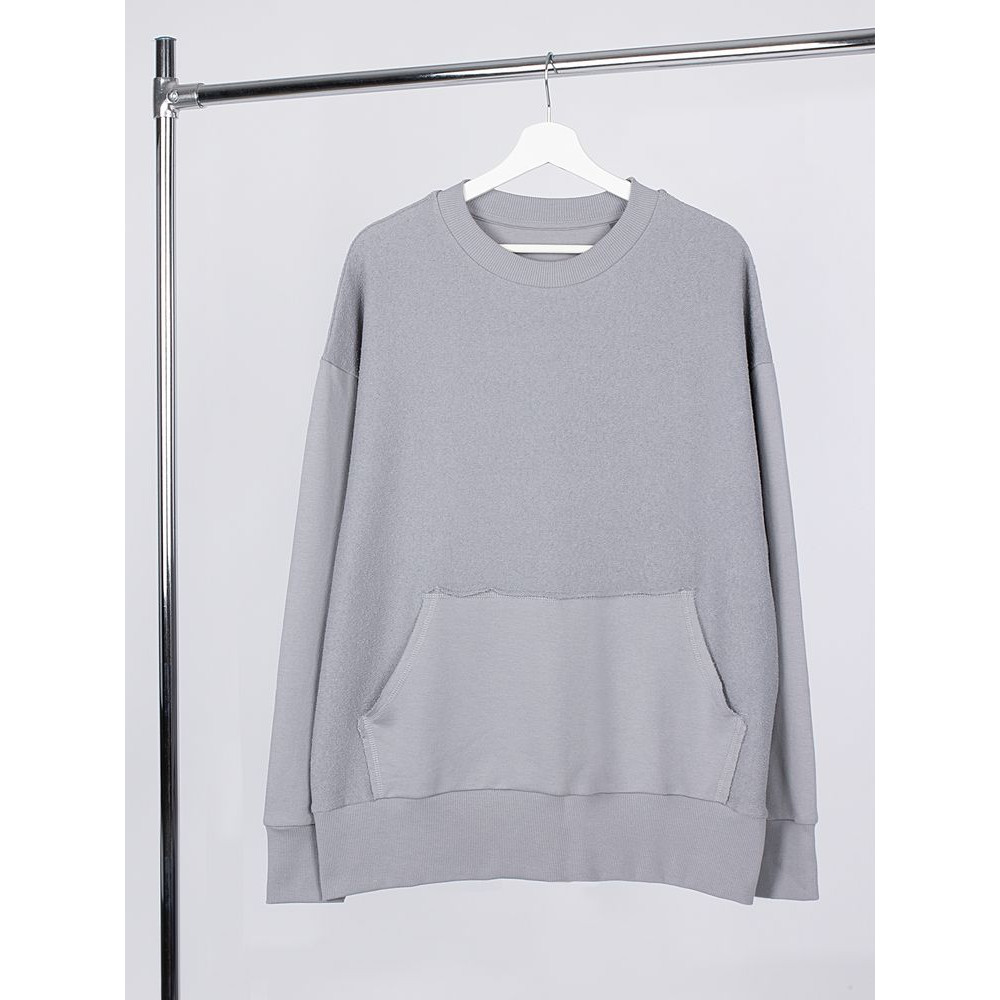 Благодаря особой конструкции, где часть деталей — перед и спинка — вывернута наизнанку, свитшот приобретает запоминающийся вид. Так внутренняя, обычно незаметная сторона материала превращается в лицевую: миниатюрные петельки бывшей изнанки становятся настоящим украшением толстовки, добавляя ей оригинальности и эффект невероятно приятной плюшевости.