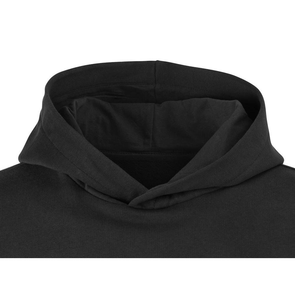 Толстовка с капюшоном (худи) из плотного хлопкового 3х ниточного футера. В капюшоне подкладка в тон, а горловина спинки дополнительно укреплена тесьмой с выделкой елочка. Капюшон без шнурков – ничего не отвлекает от вашего брендирования. Манжеты и низ изделия отделаны рибом 2х2. Глубокий комфортный карман кенгуру на полочке. Полотно из утяжеленного хлопкового футера внутри с петельками без начеса.