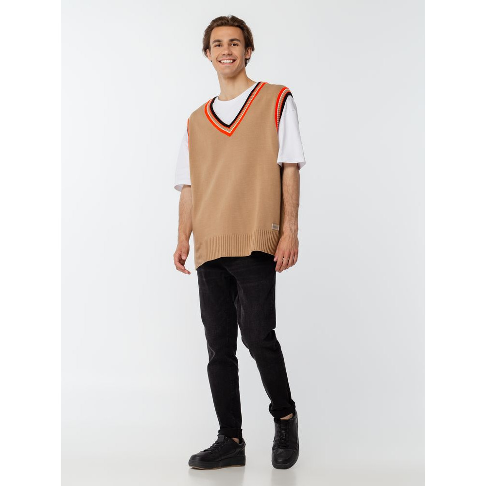 Оверсайз жилет с V-образным вырезом и цветной отделкой.