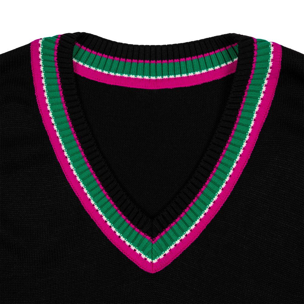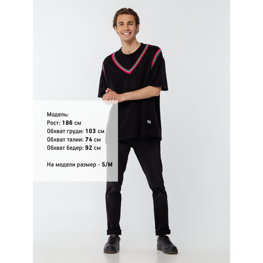 Оверсайз жилет с V-образным вырезом и цветной отделкой.