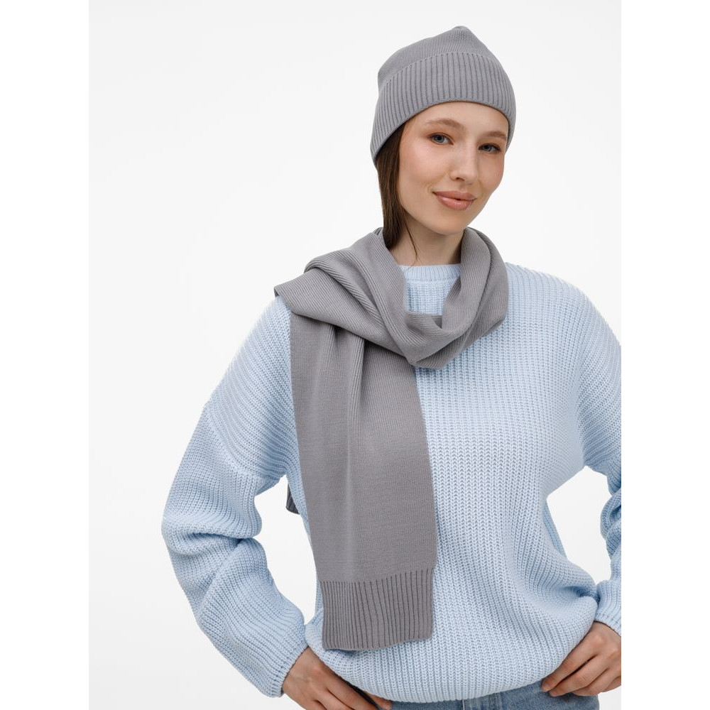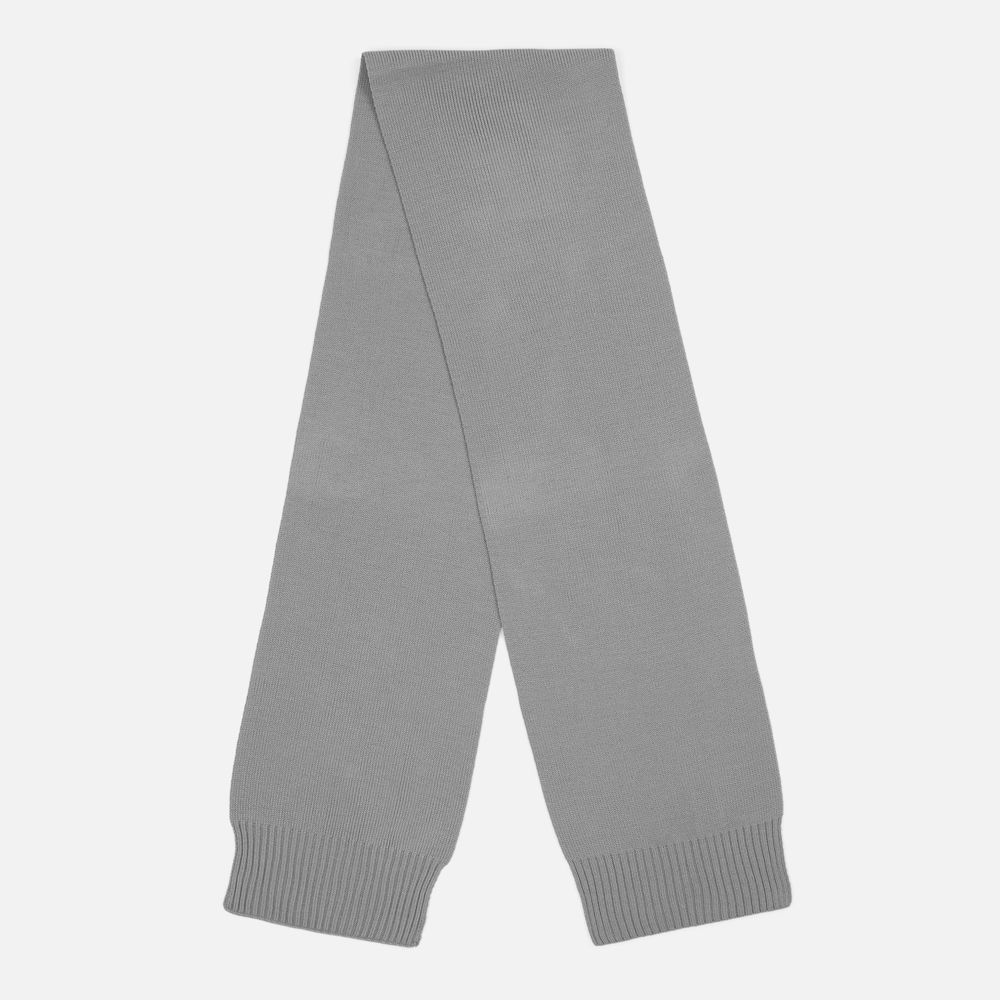 Классический однослойный шарф гладкой вязки. Края, связанные резинкой, придают изделию завершенный и аккуратный вид.