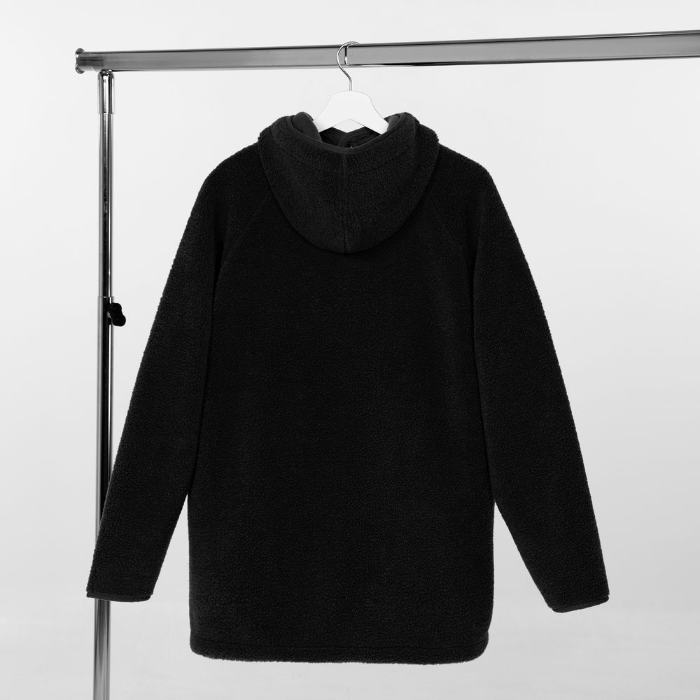 Анорак с капюшоном из современного двухслойного материала— искусственный мех снаружи, флис внутри.