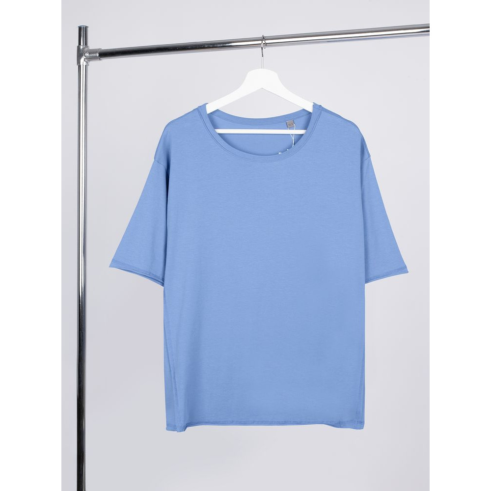 Футболка унисекс свободной посадки Vozduh создана для тех, кто следит за трендами и ценит комфорт. Необработанные края рукавов и низа изделия добавляют ему оригинальности и легкой небрежности, а боковые вставки создают притягательный летящий силуэт.