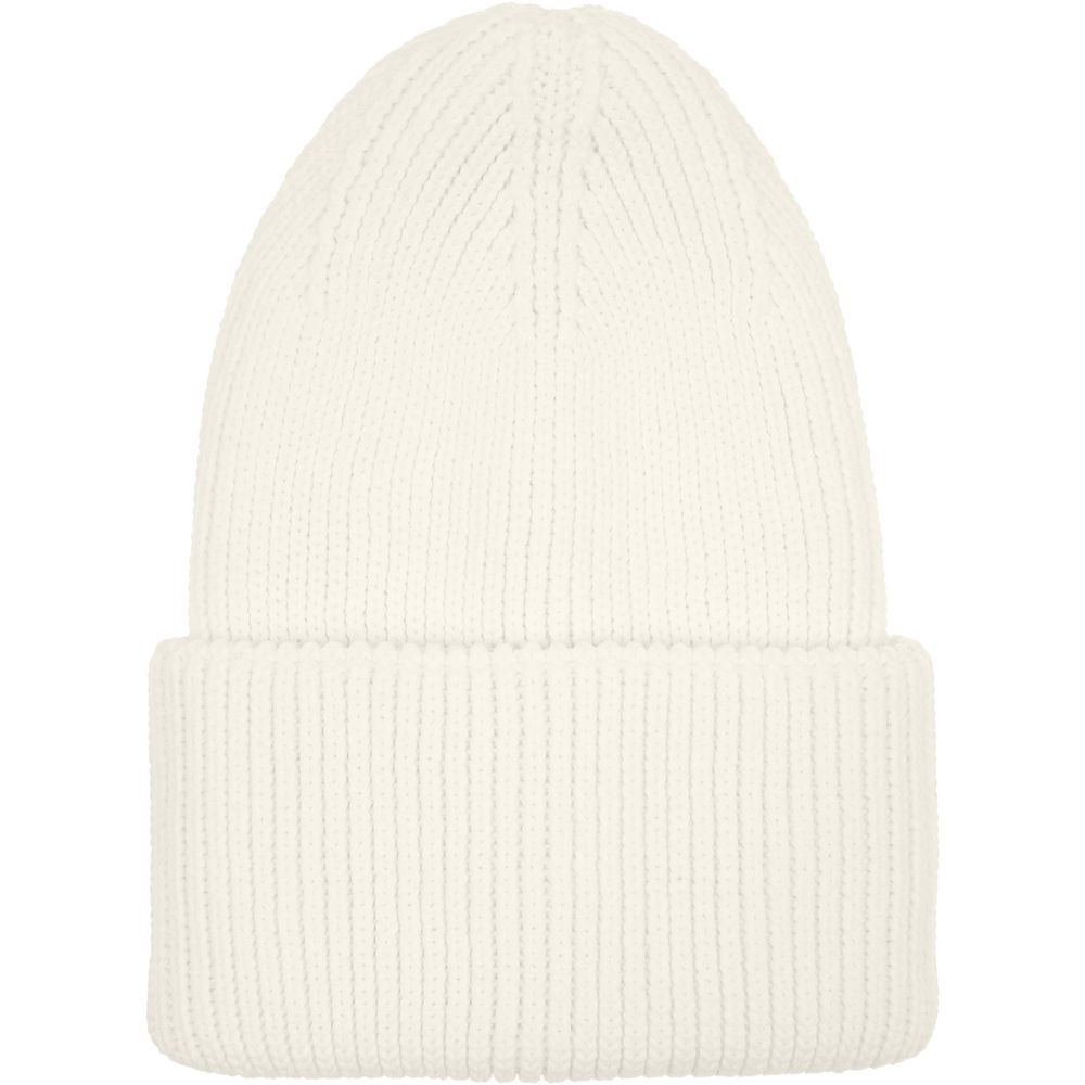 Удлиненная шапка объемной фактурной вязки с отворотом.