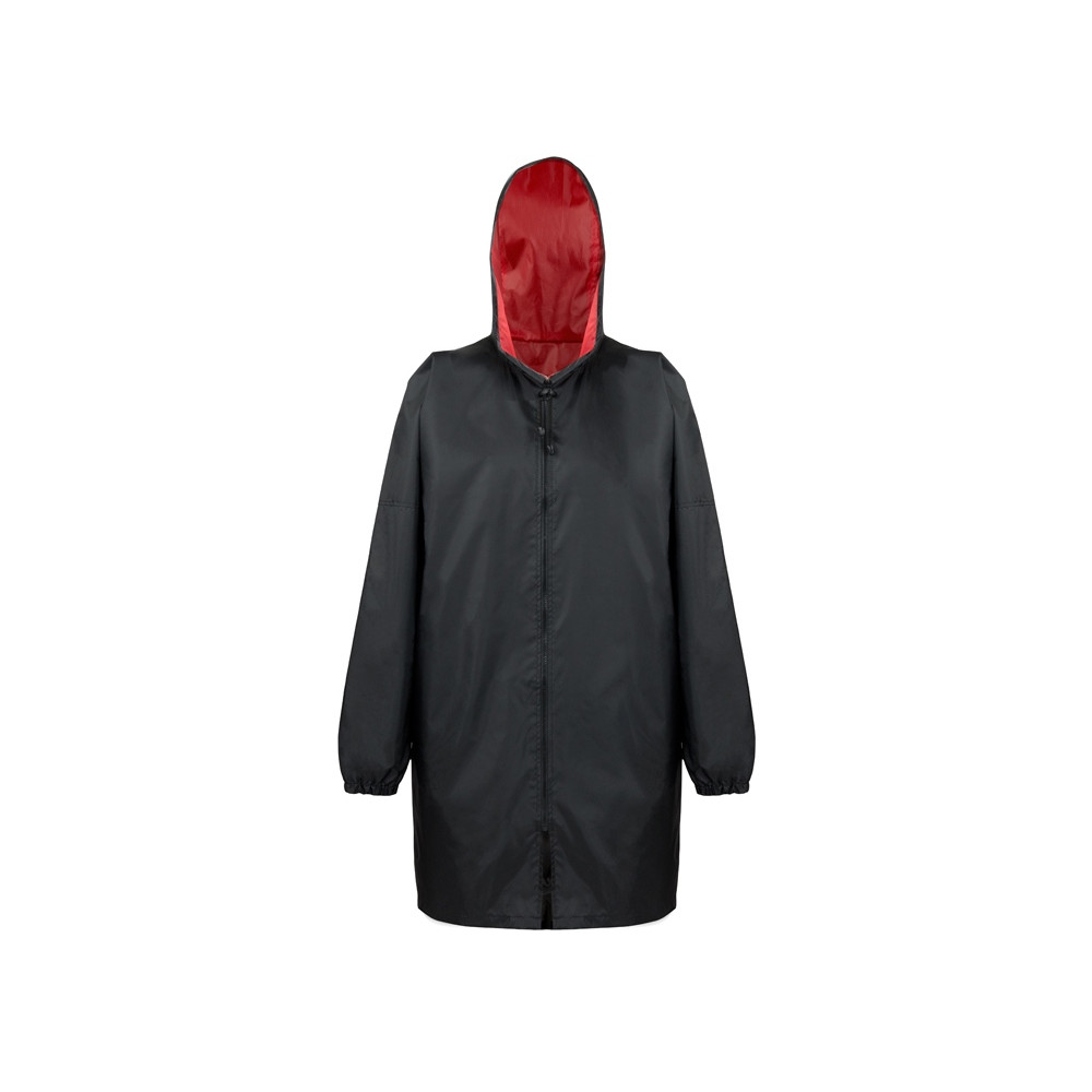 Стильный и практичный дождевик, созданный для активного образа жизни и эффективного промо. Его двусторонний дизайн сочетает простоту и яркость: черная сторона — для повседневной сдержанности, цветная — для привлечения внимания. Изготовлен из легкого, но плотного водоотталкивающего материала, который не теряет форму в непогоду.