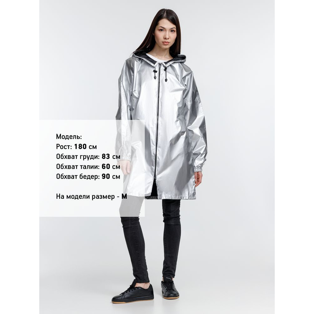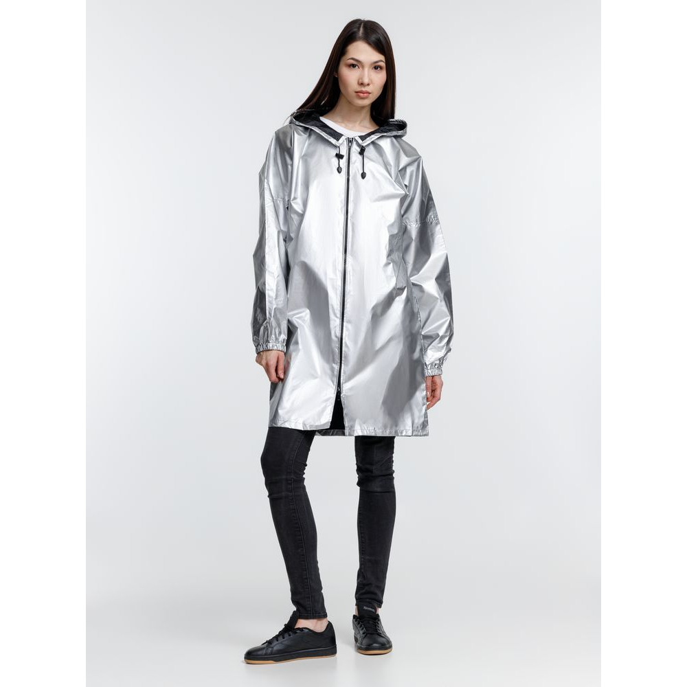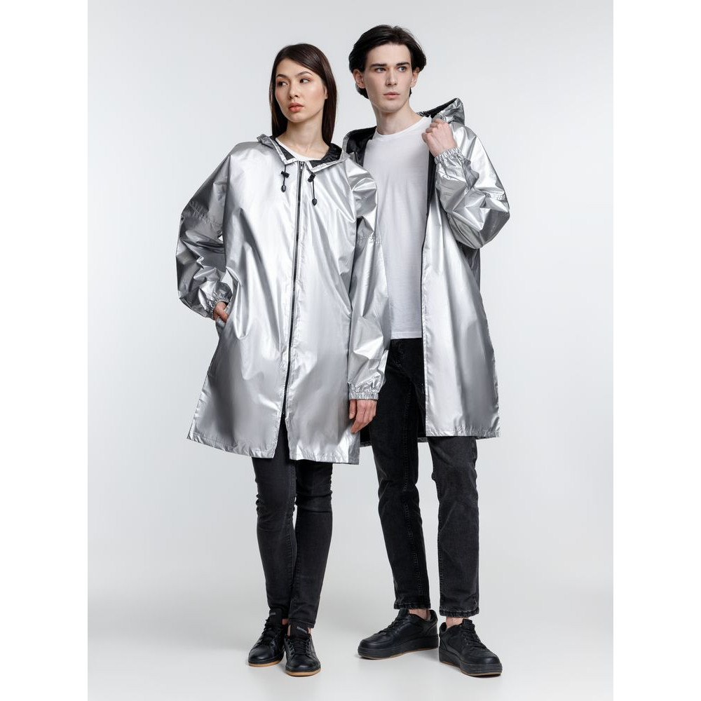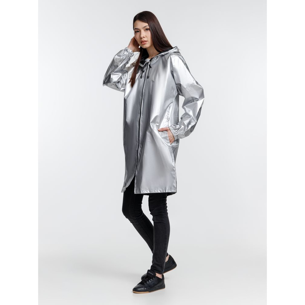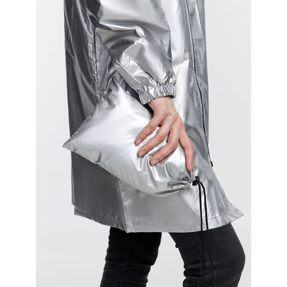 Плащ-дождевик из ткани таффета на молнии с капюшоном. Складывается в мешочек — удобно брать с собой.