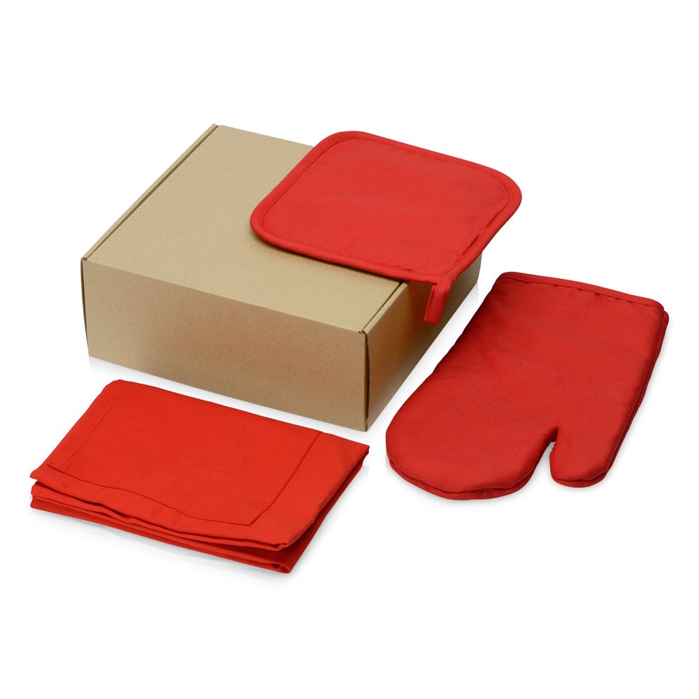 С подарочным набором Brand Chef любой повар, даже начинающий, имеет все шансы на успех: по крайней мере, обжечься или запачкать одежду благодаря прихваткам и фартуку точно не выйдет. Фартук имеет карман на животе, на который производится печать, а также поле для нанесения на груди. Посадку фартука можно регулировать при помощи ремешка вокруг шеи. - Прихватка и рукавичка снабжены удобными петельками, за которые их можно подвесить на крючки - Нанесение возможно не только на все компоненты набора, но и на подарочную коробку - Крафтовая коробка решает вопрос упаковки набора