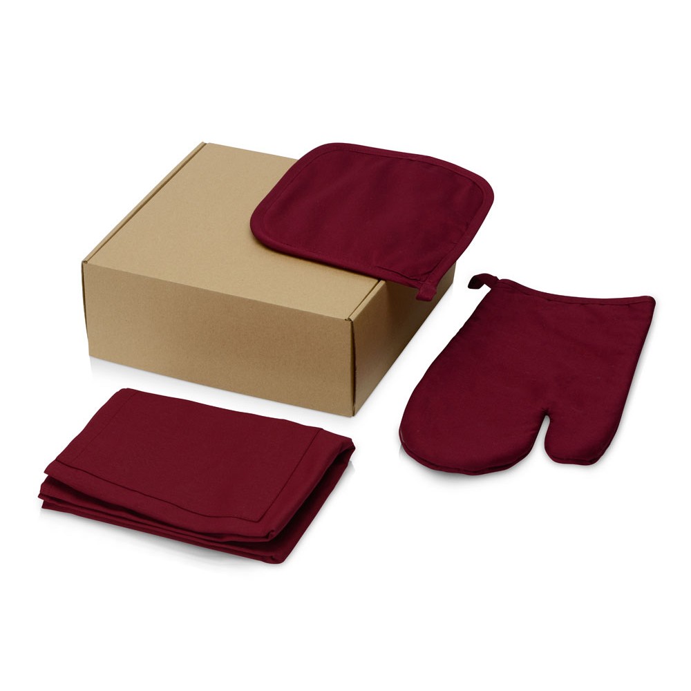 - Комплектность фартук 66 х 89 см, прихватка 20,5 х 20,5 х 0,5 см, рукавица 30 х 18 х 2 см