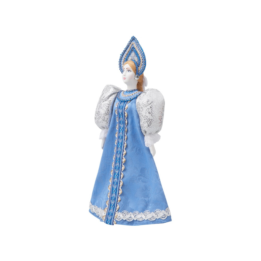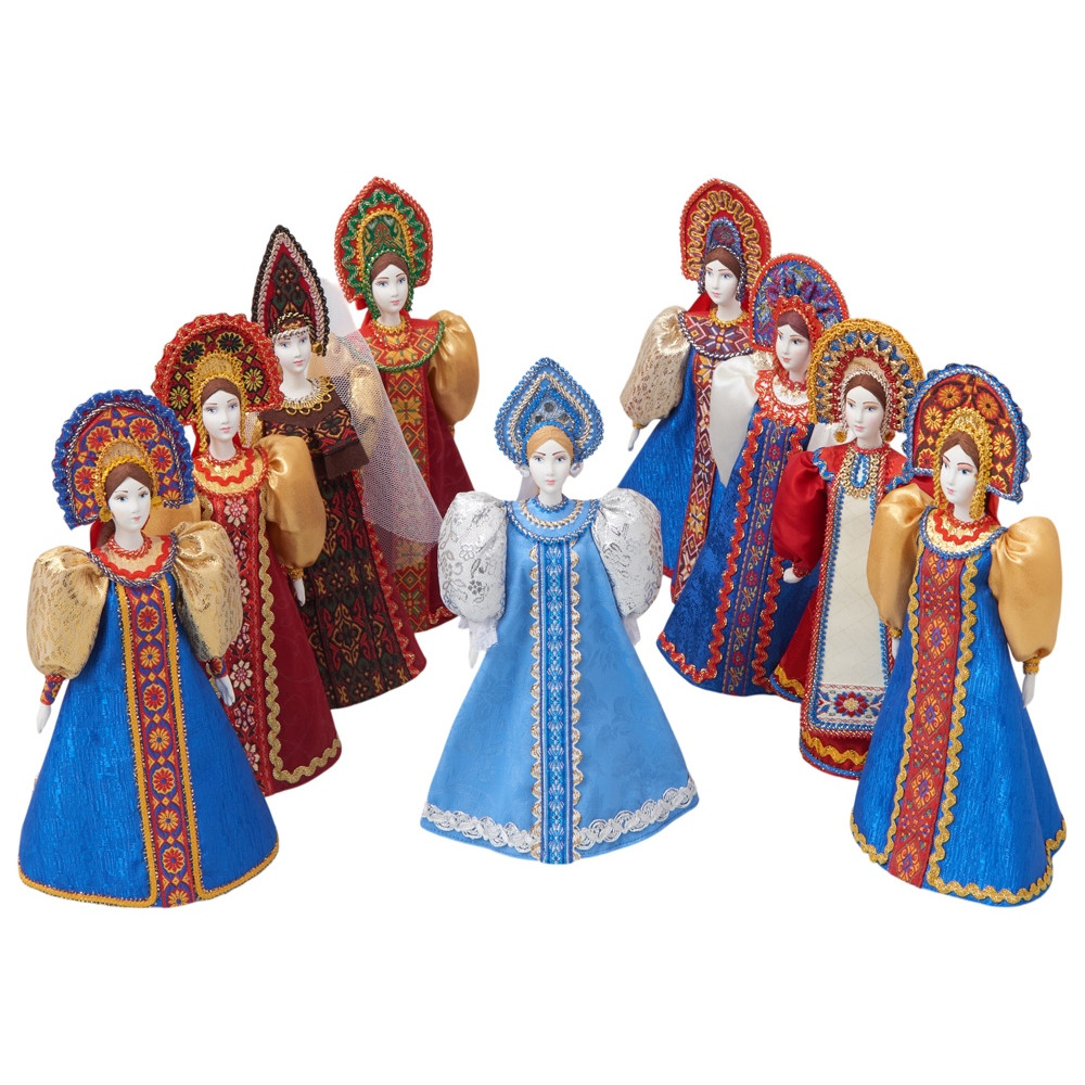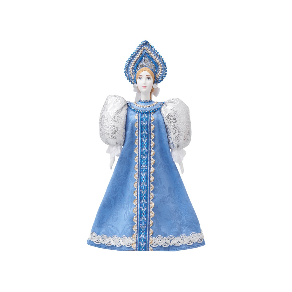 - Фарфоровая кукла в народном костюме ручной работы: расписной сарафан и кокошник с традиционной вышивкой воссоздают образ русской красавицы.