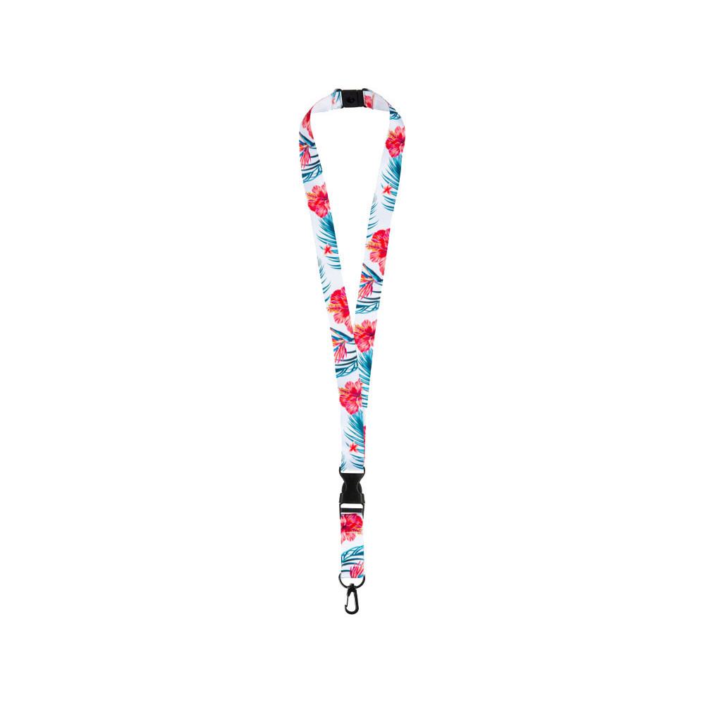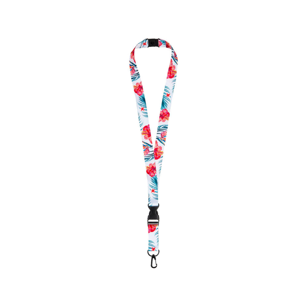 Ланъярд 2 см под сублимацию с карабином, межуровневым замком и замком обрыва, черный