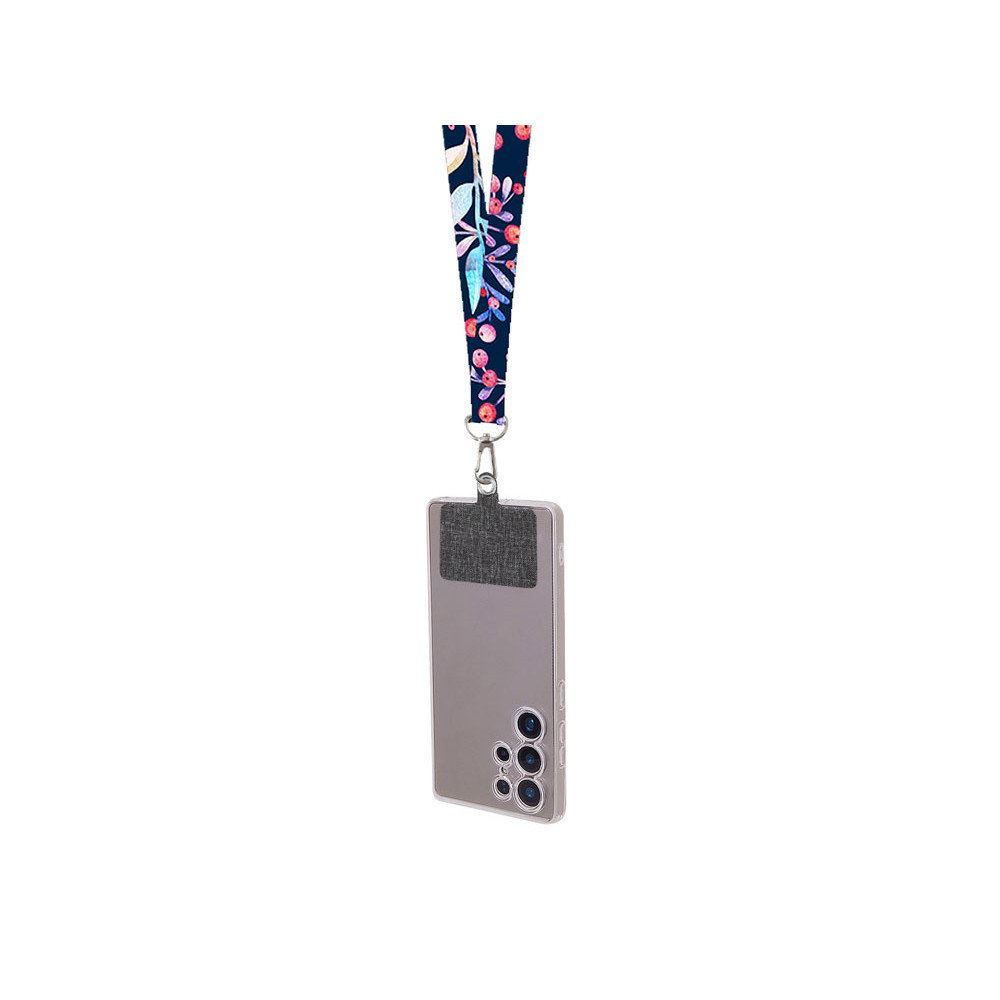 Ланъярд 2 см под сублимацию с трендовым карабином, замком обрыва и большим держателем для телефона из ПЭ, серебристый