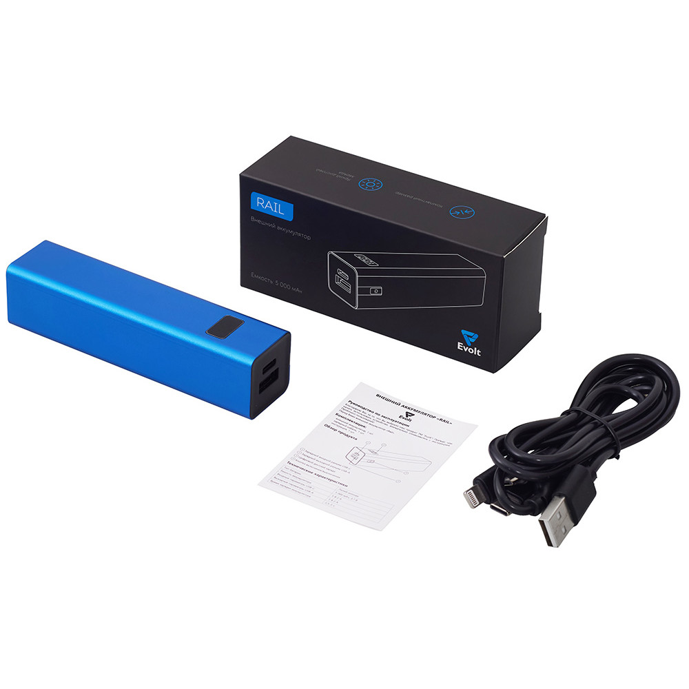 • Внешний аккумулятор Rail, 5000 mAh, синий
