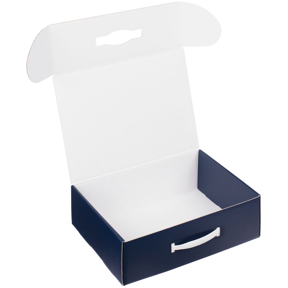 Самосборная коробка-шкатулка со вставной пластиковой ручкой.