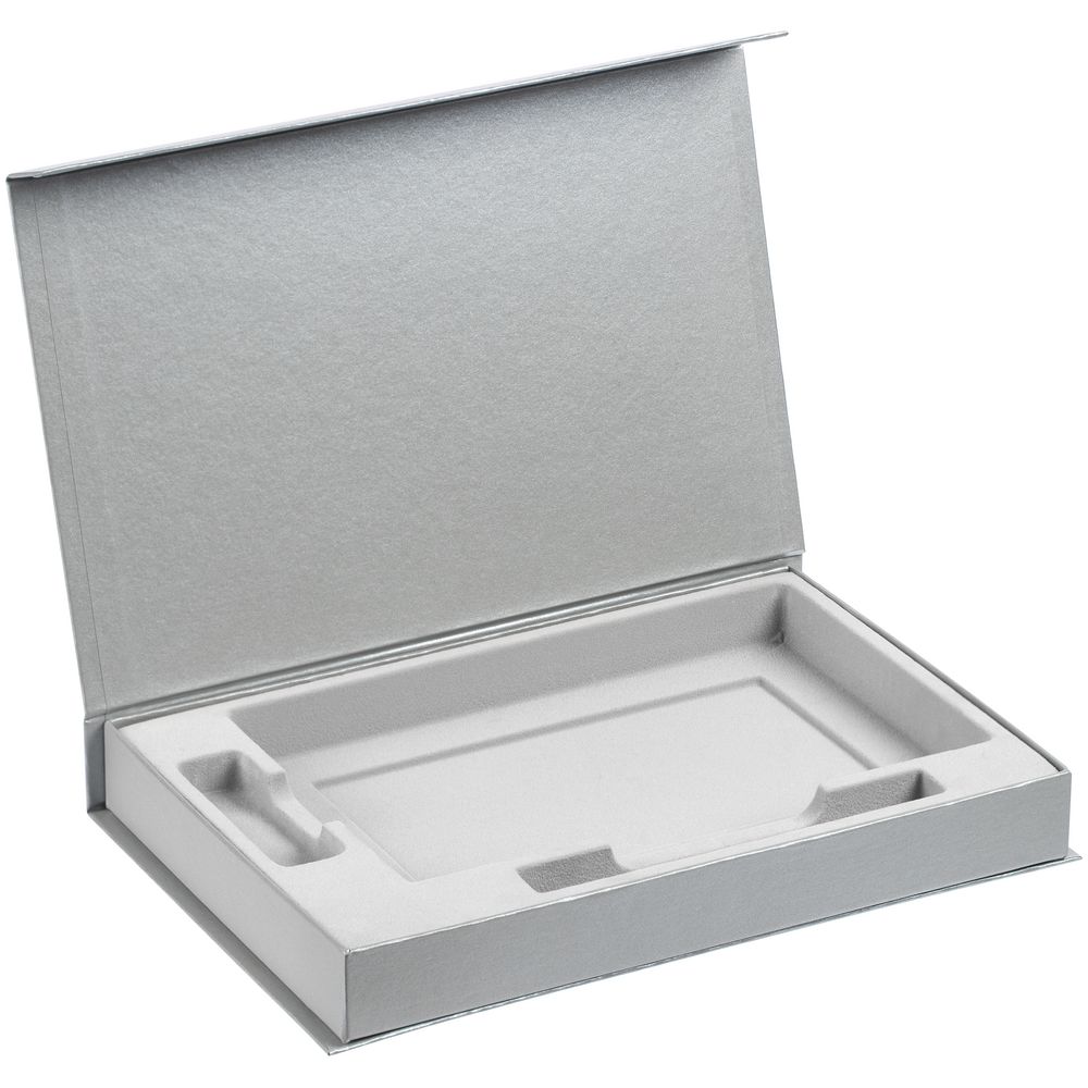 Коробка Silk с ложементом под ежедневник 13x21 см, флешку и ручку, ver. 2, серая