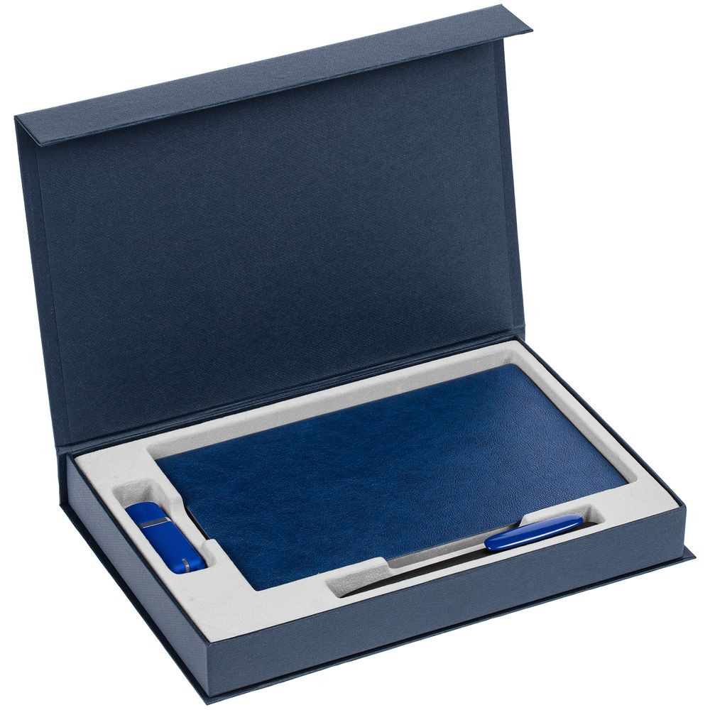 Коробка Silk с ложементом под ежедневник 13x21 см, флешку и ручку, ver. 2, темно-синяя