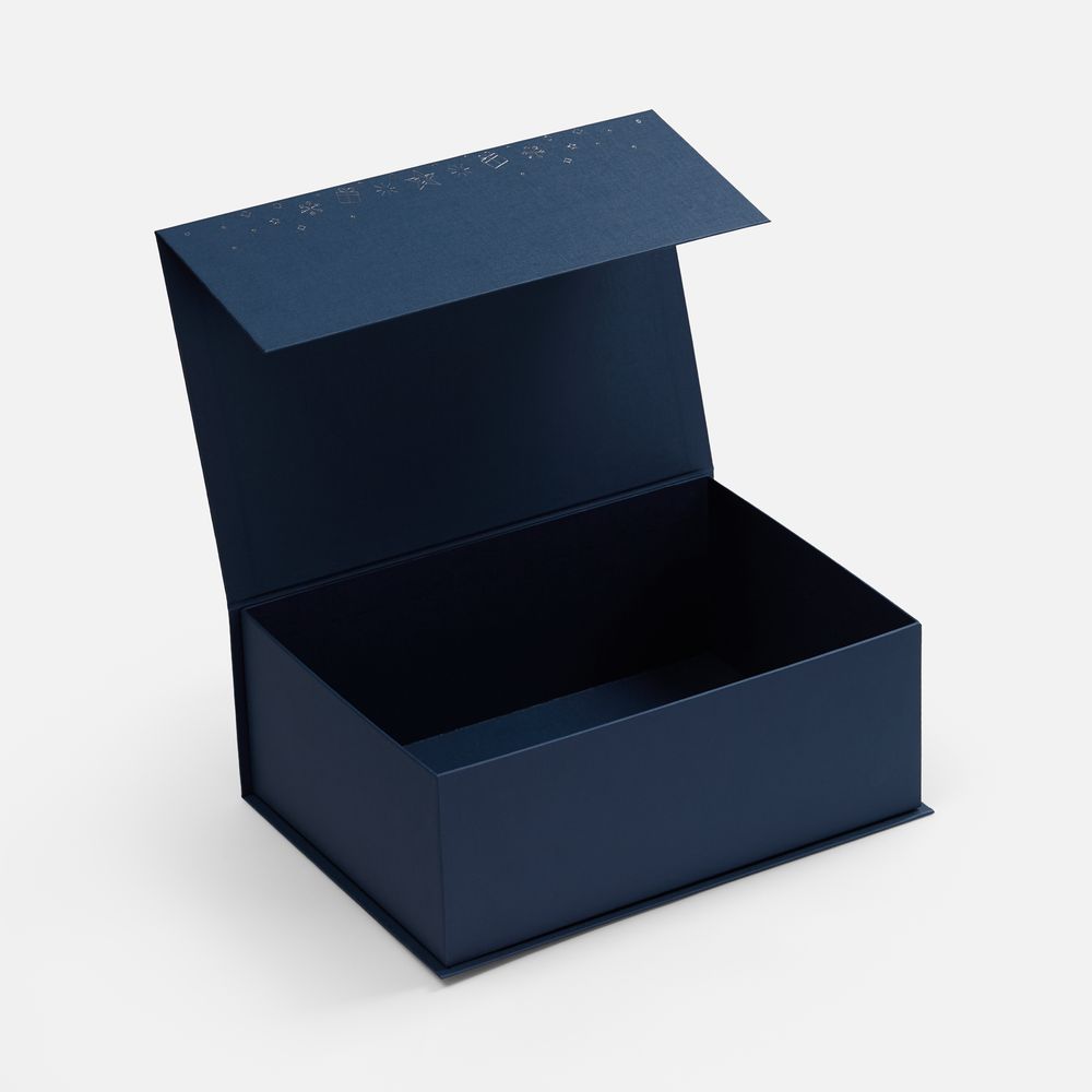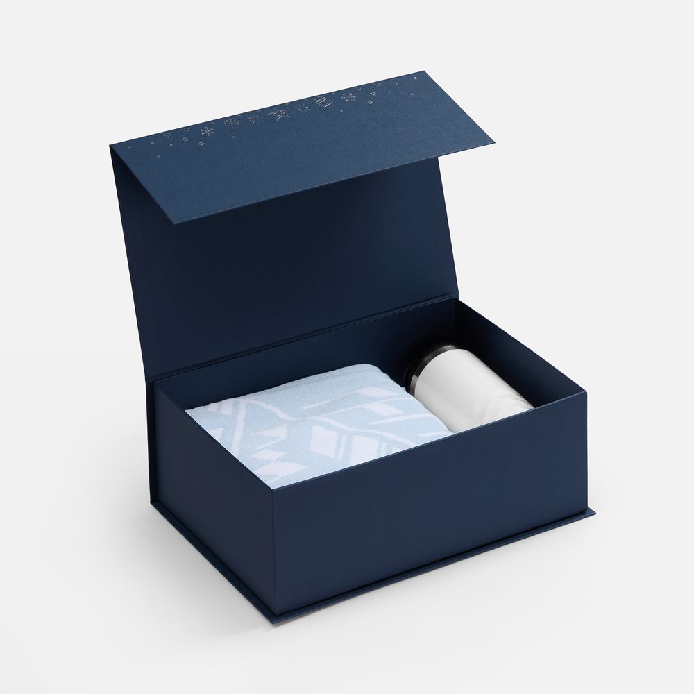 Подарочная коробка Snowlace с новогодним паттерном станет стильным дополнением к праздничному презенту.