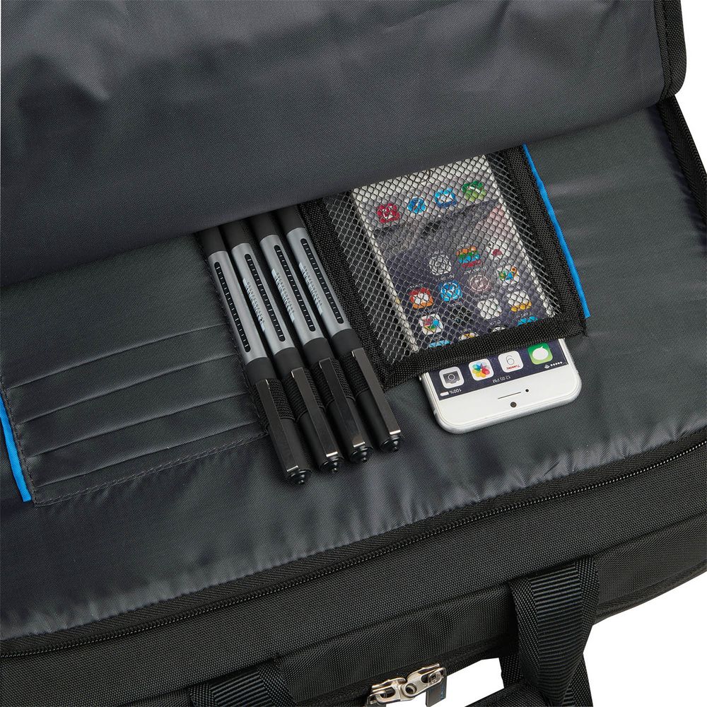 - Передний органайзер на молнии со слотами для карт, держателями для ручек и карманом для телефона