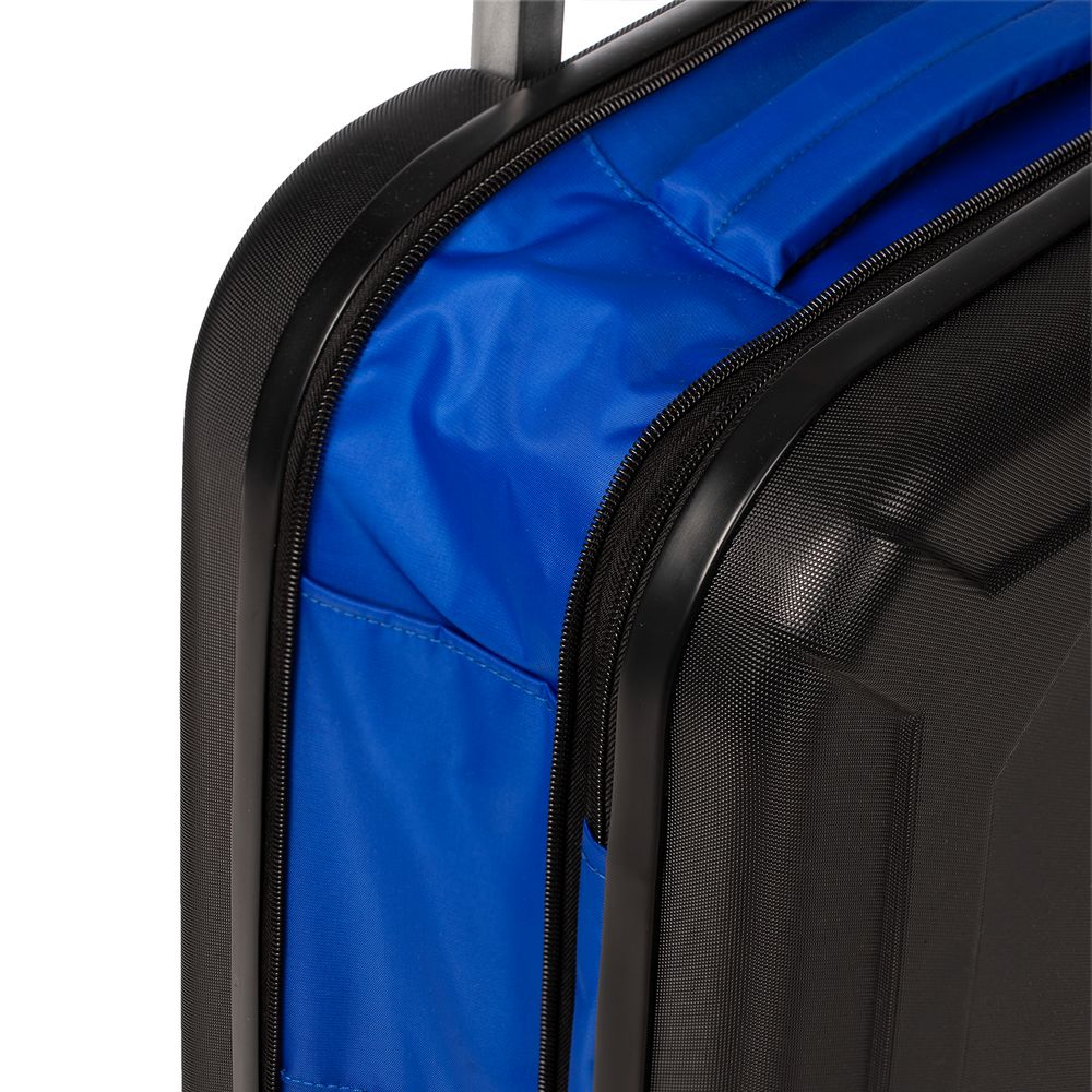 Для изготовления корпуса использован ударопрочный АБС-пластик последнего поколения, а расширение чемодана сделано из очень плотной водонепроницаемой ткани, которая идеально подходит для эффектных принтов больших размеров.