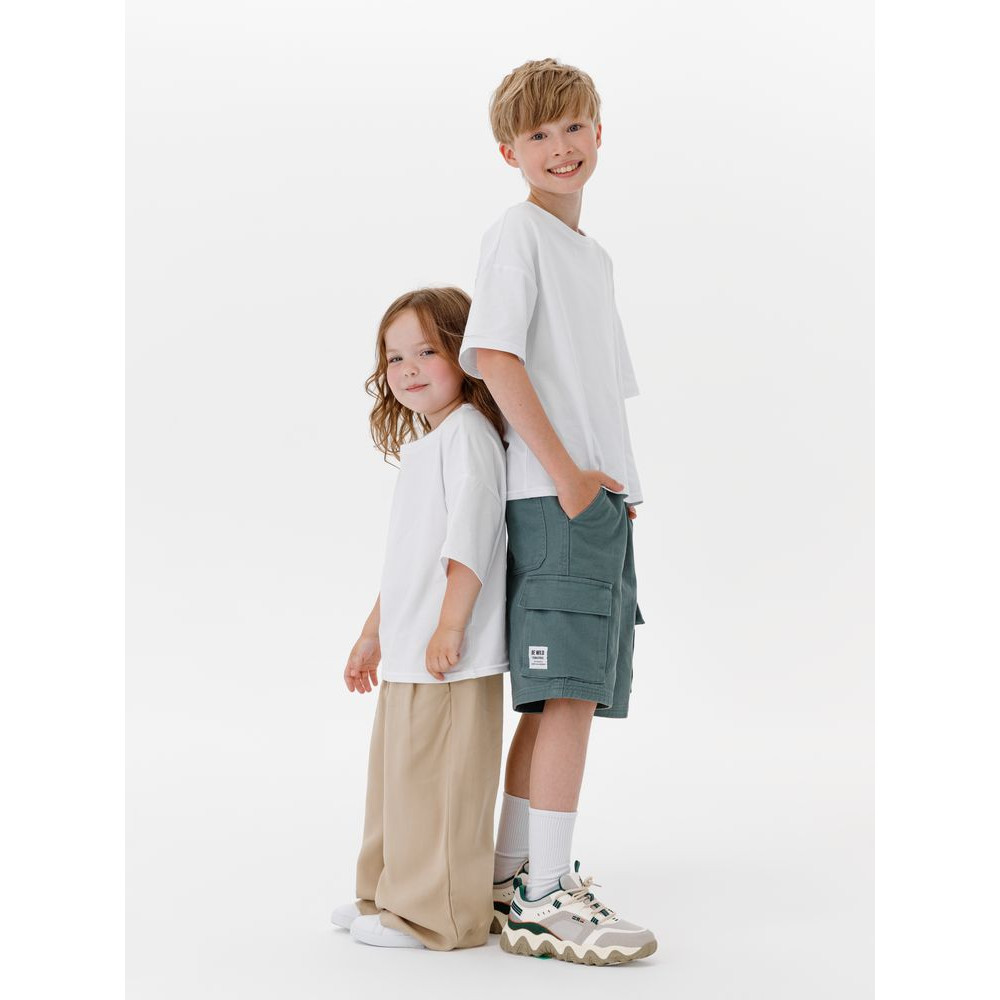 Детская футболка оверсайз из гребенного хлопка с эластаном не стесняет движений и создает модный силуэт.