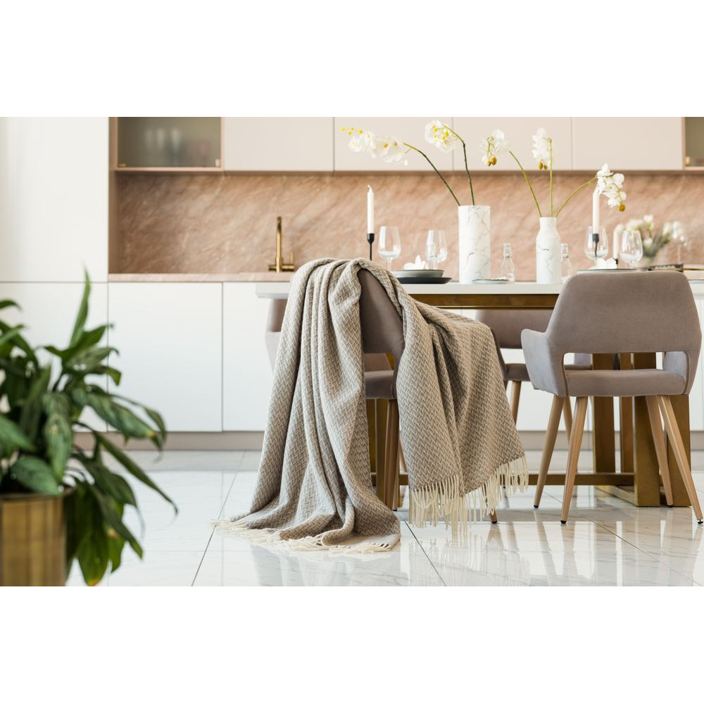 Плед с бахромой «Селигер» приглушенного пастельного оттенка из натуральной новозеландской шерсти — это возможность без лишнего пафоса пожелать процветания и благополучия своему деловому партнеру.