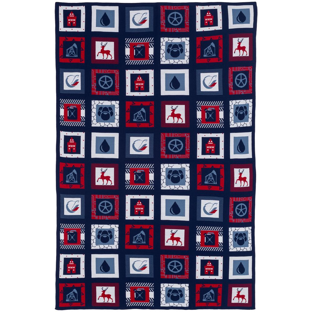 Модель: плед жаккардовой вязки, гладкая поверхность, 4 цвета нитей, рябая изнанка.
