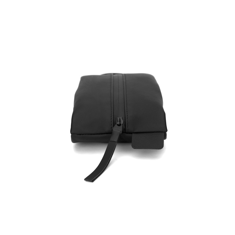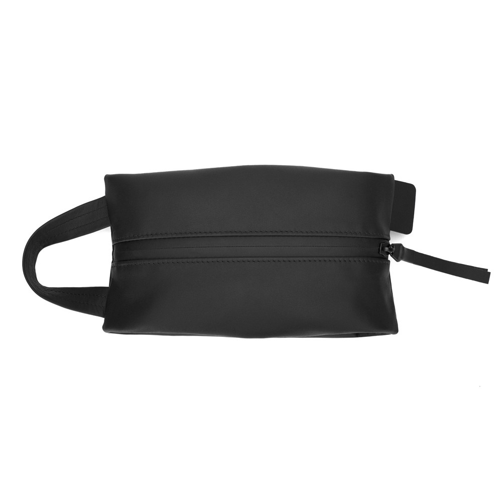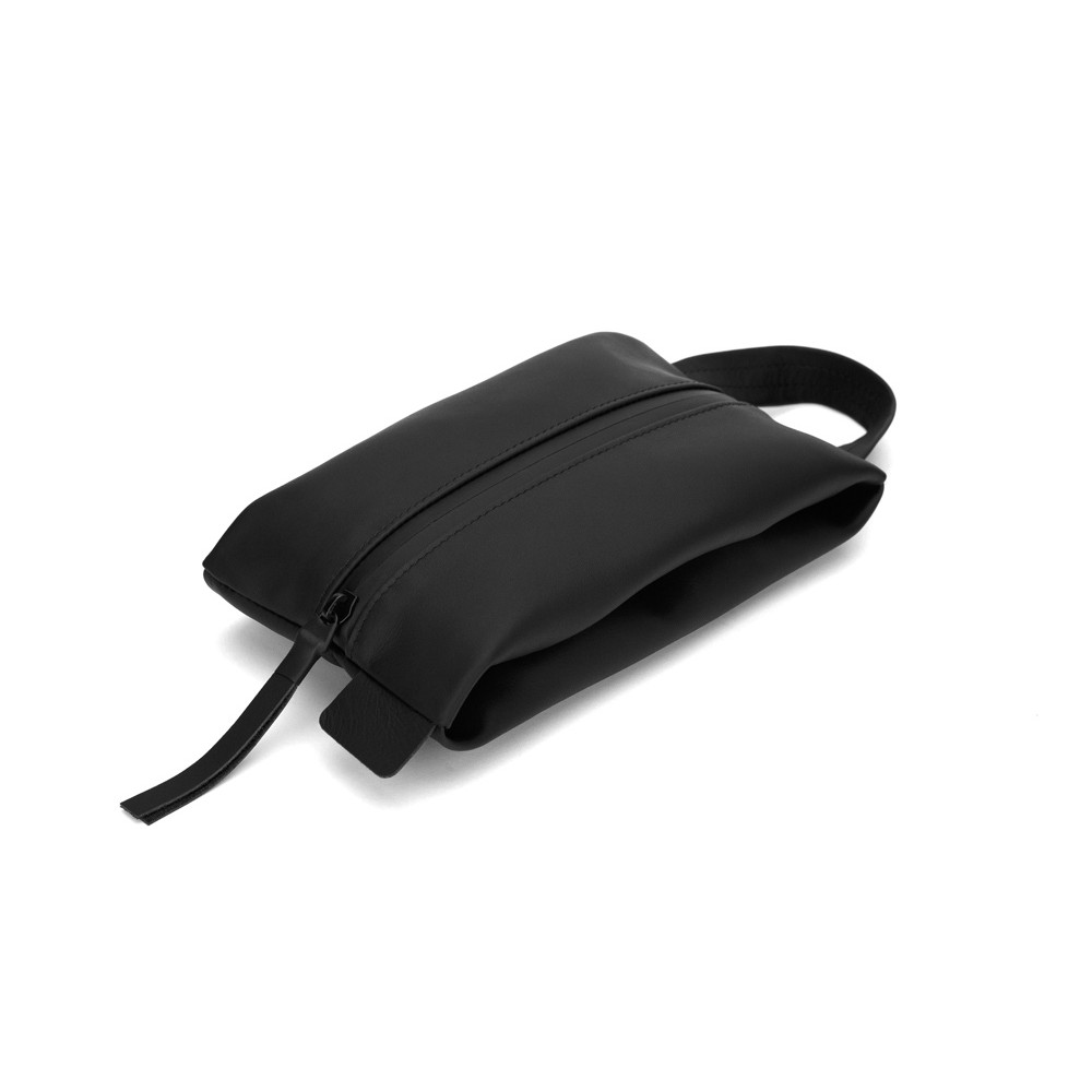Несессер выполнен из натуральной кожи наппа с влагозащитной пропиткой. Водонепроницаемая молния исключает попадание жидкости внутрь органайзера, поэтому в нём можно хранить важные документы.