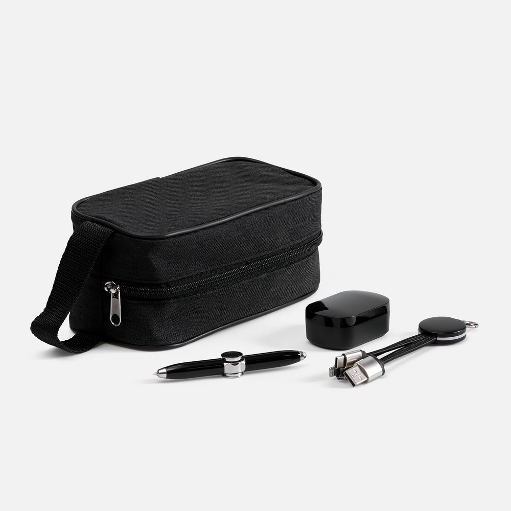 - наушники, кабель-брелок - пластик, нейлоновая оболочка, металл; ручка - металл; несессер - полиэстер, 300D