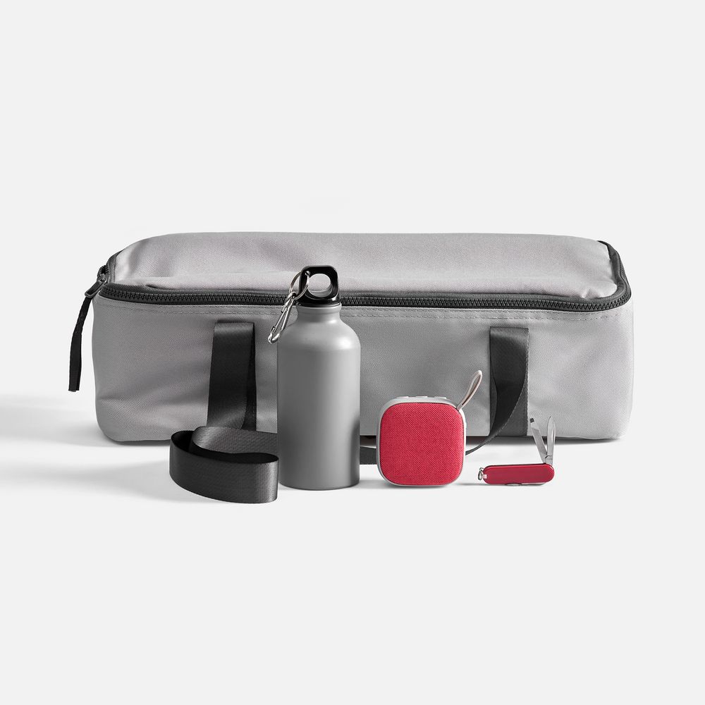 - термосумка - полиэстер, 600D с полиуретановой пропиткой; колонка - пластик, покрытие софт-тач, полиэстер; бутылка - алюминий; нож-брелок - металл, пластик