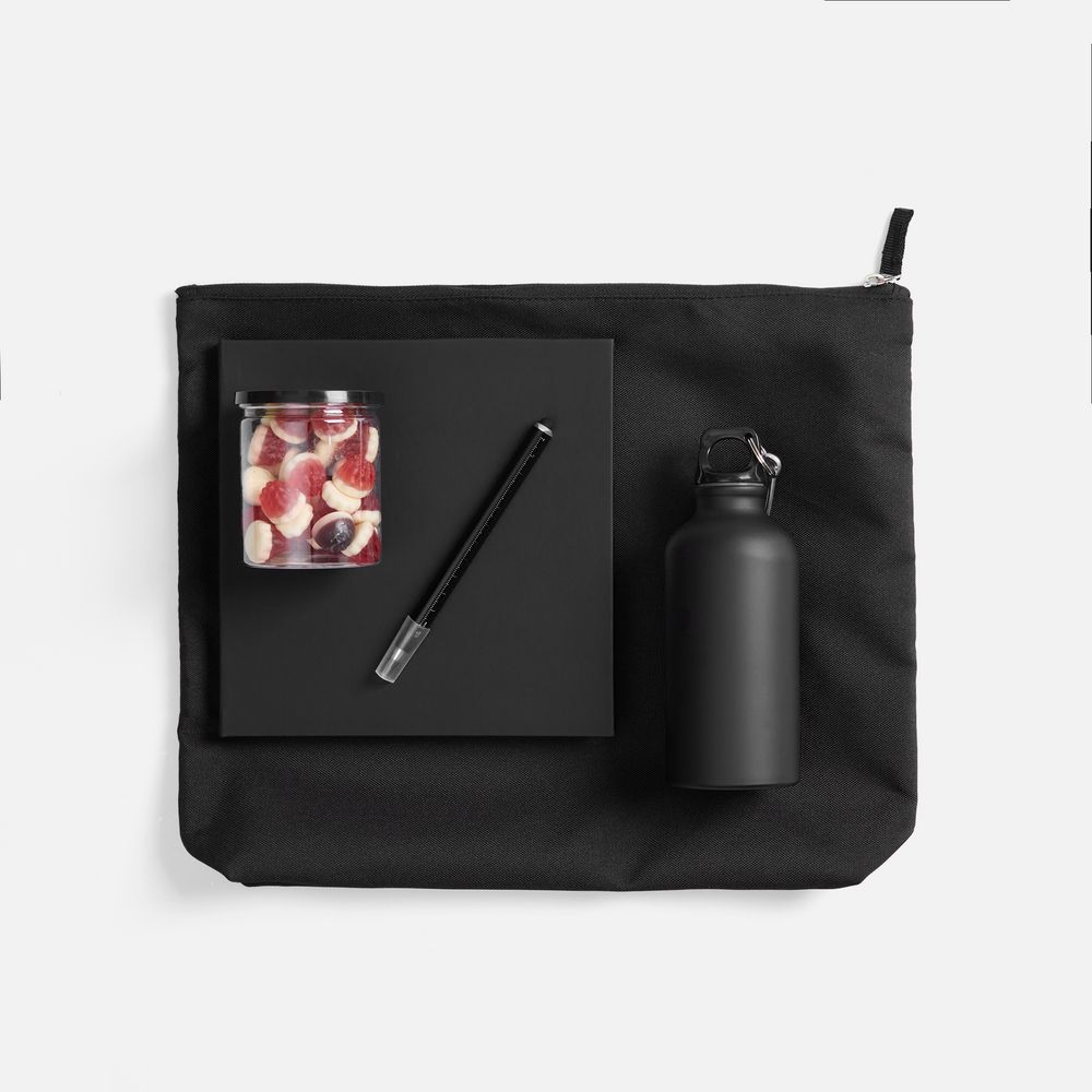 Для полного комфорта не обойтись без сладкого перекуса, бутылочки освежающей воды, а чтобы никто не похитил творческую идею — лучше все надежно скрыть в стильном шопере с непрозрачным органайзером.