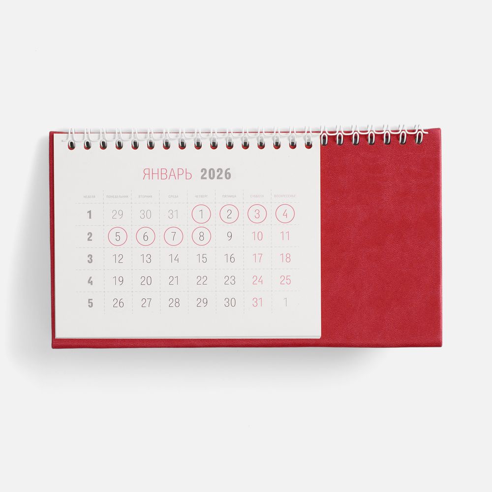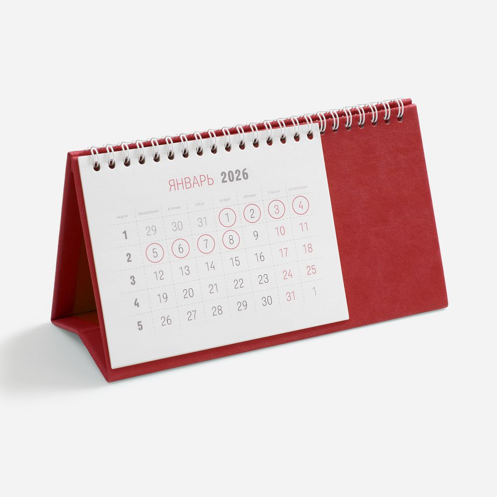 Настольный, перекидной календарь-домик выполнен из материала Latte, красный РР.