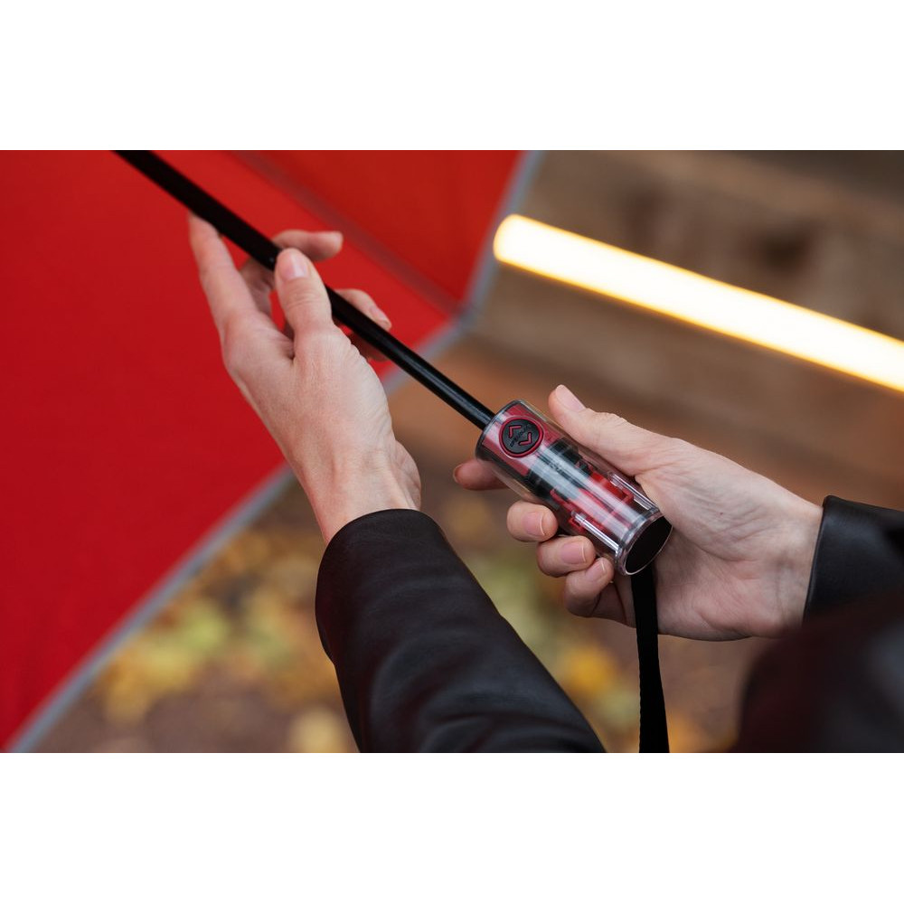 Складной зонт Futurum привлекает внимание оригинальным дизайном. Складываясь после дождя, он прячет мокрую поверхность в себя, а сухая остается снаружи.Светоотражающий кант и ручка из прозрачного пластика, не скрывающая ярких деталей внутри, добавляют внешнему виду зонта футуристичности.