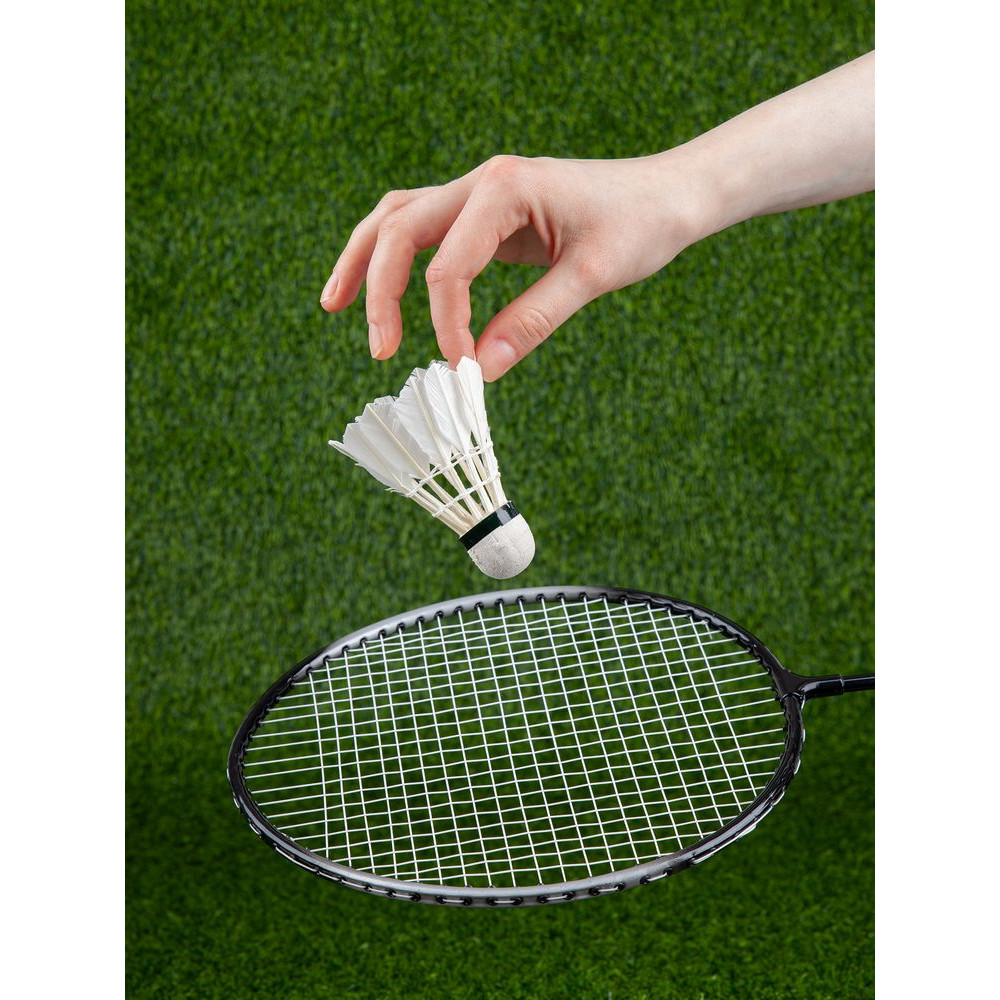 - волан: голова - ЭВА, юбка - гусиное перо; ракетка: обод - алюминий, стержень - сталь; чехол - полиэстер
