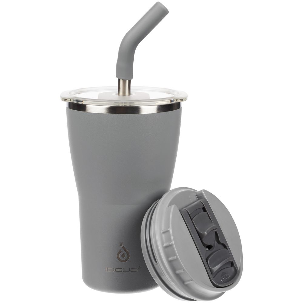 - 2 крышки в комплекте: одна на 100% герметичная с механизмом блокировки отверстия для питья, вторая — с отверстием для трубочки