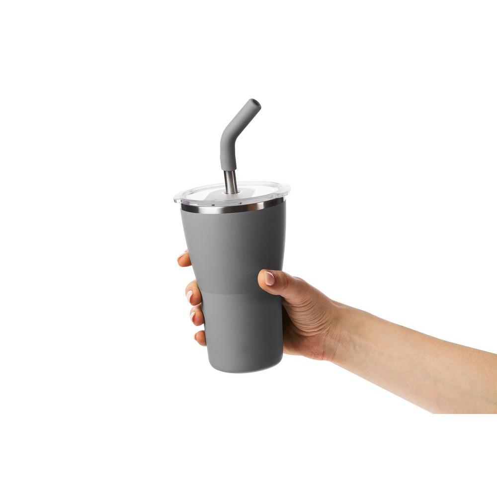 • корпус - нержавеющая сталь, 18/8; крышка - пластик; трубочка - нержавеющая сталь, пищевой силикон