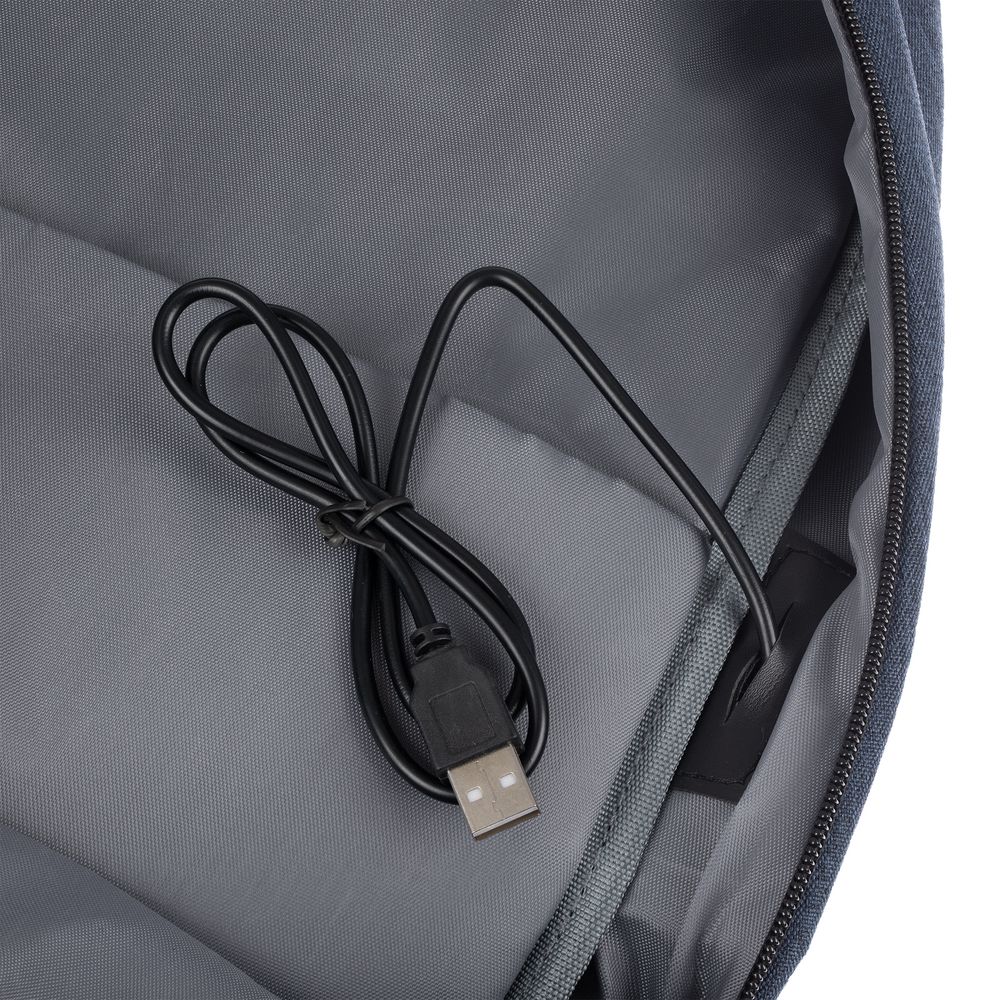 - Внешний USB-порт для зарядки гаджетов (внутри рюкзака — провод для подключения)