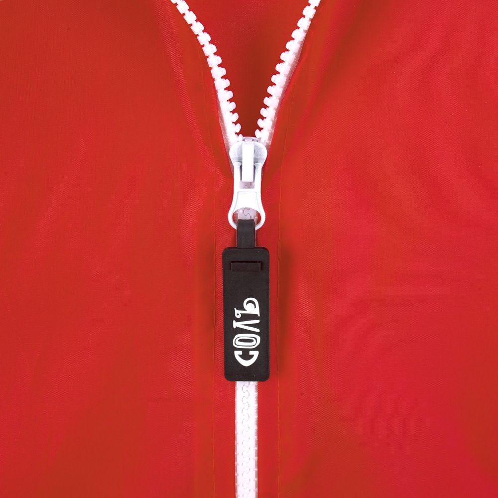 Плащ-дождевик из ткани таффета на молнии с капюшоном. Складывается в мешочек — удобно брать с собой.