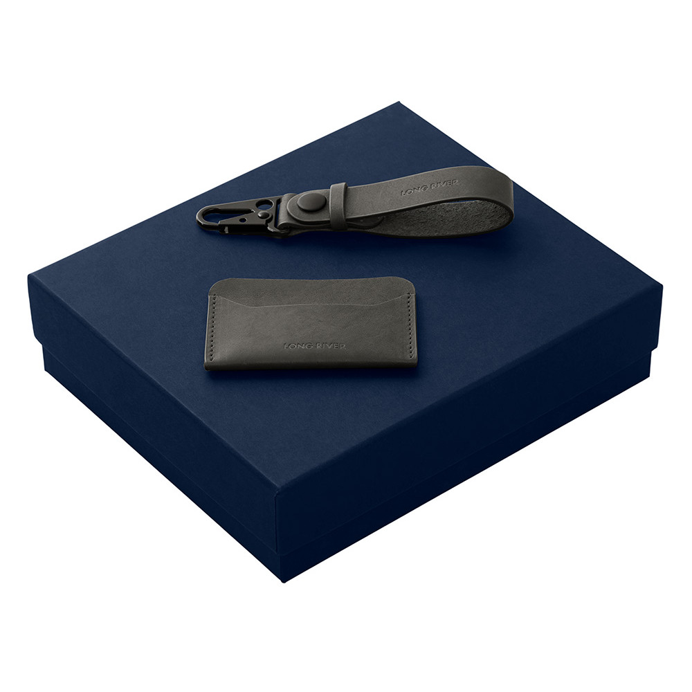 Подарочный набор Long River: картхолдер, ремешок для ключей, синяя коробка