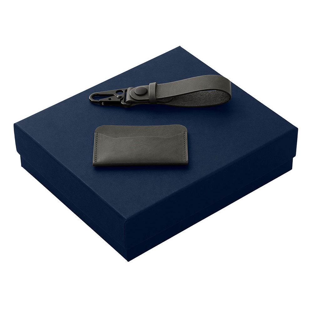 Подарочный набор Long River: картхолдер, ремешок для ключей (без лого Long River), синяя коробка