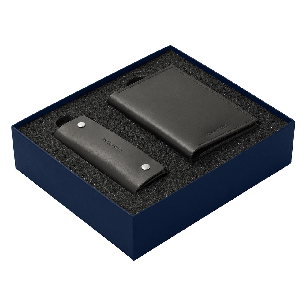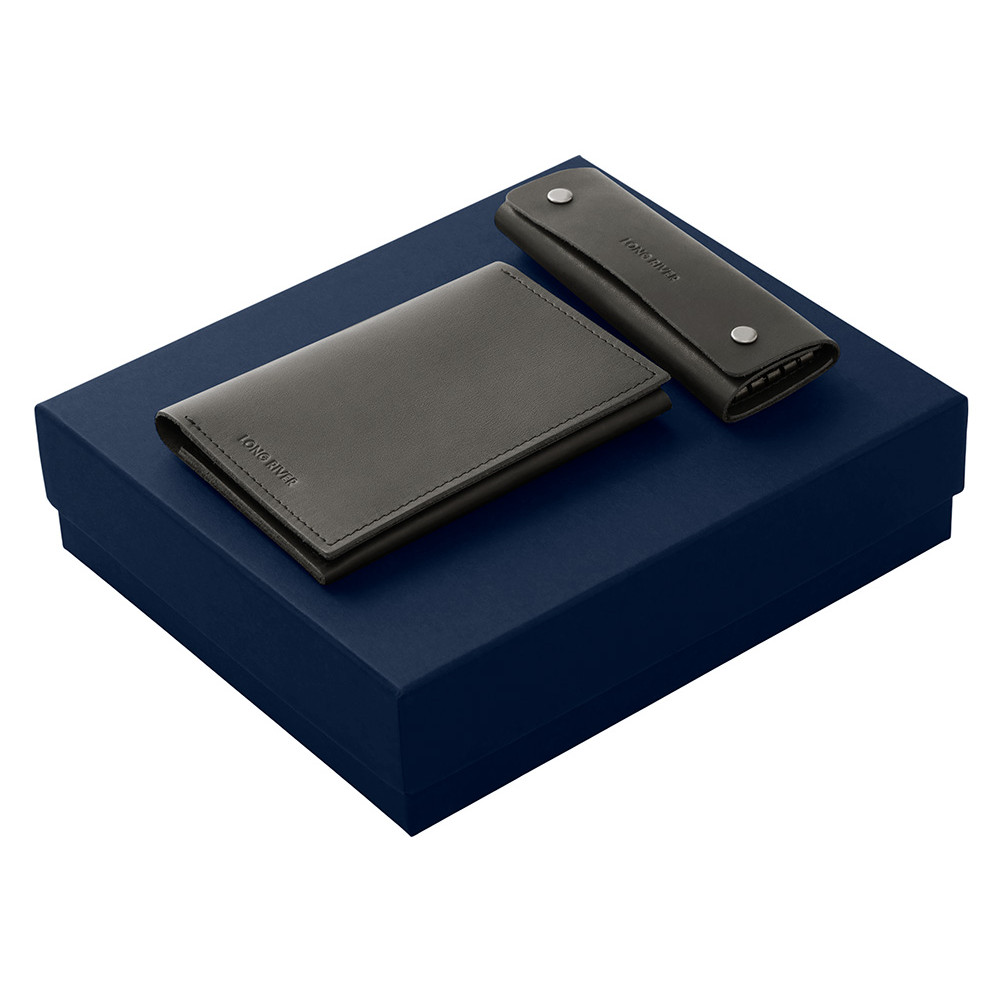 Подарочный набор Long River: обложка для паспорта, ключница, синяя коробка