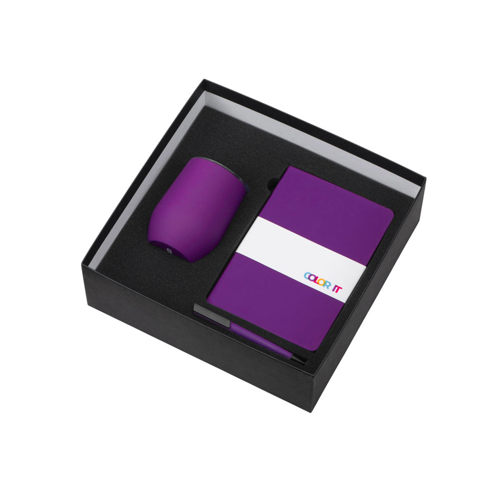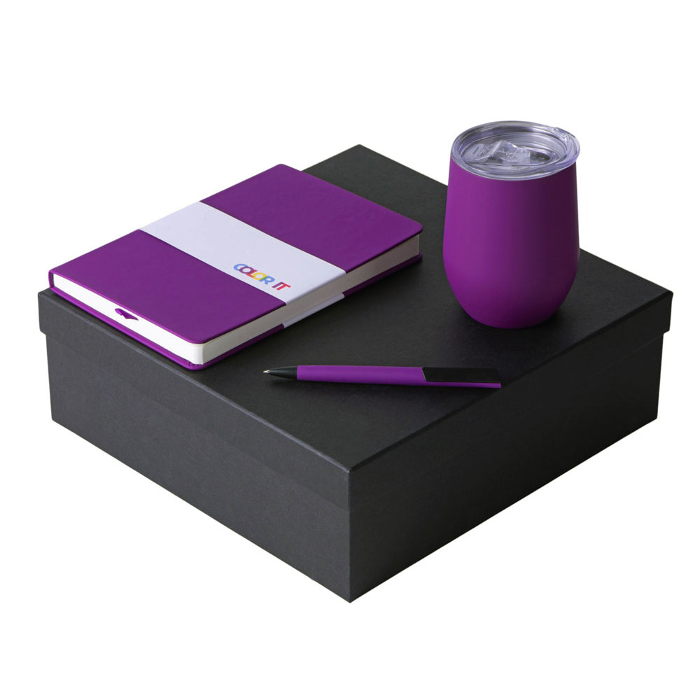 Подарочный набор c блокнотом C2, ручкой и термокружкой, фиолетовый