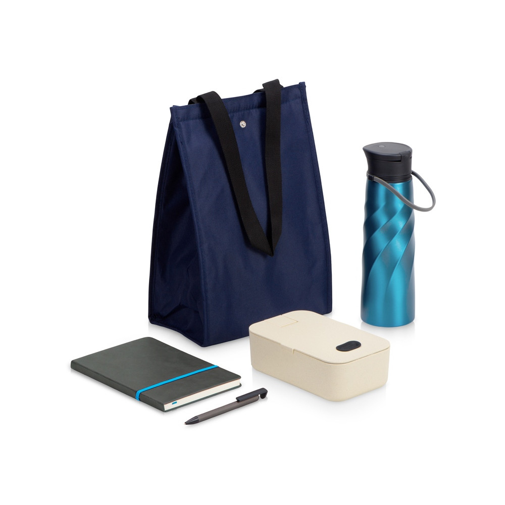 Подарочный набор с блокнотом, ручкой, ланчбоксом и бутылкой для воды Breaktime, синий