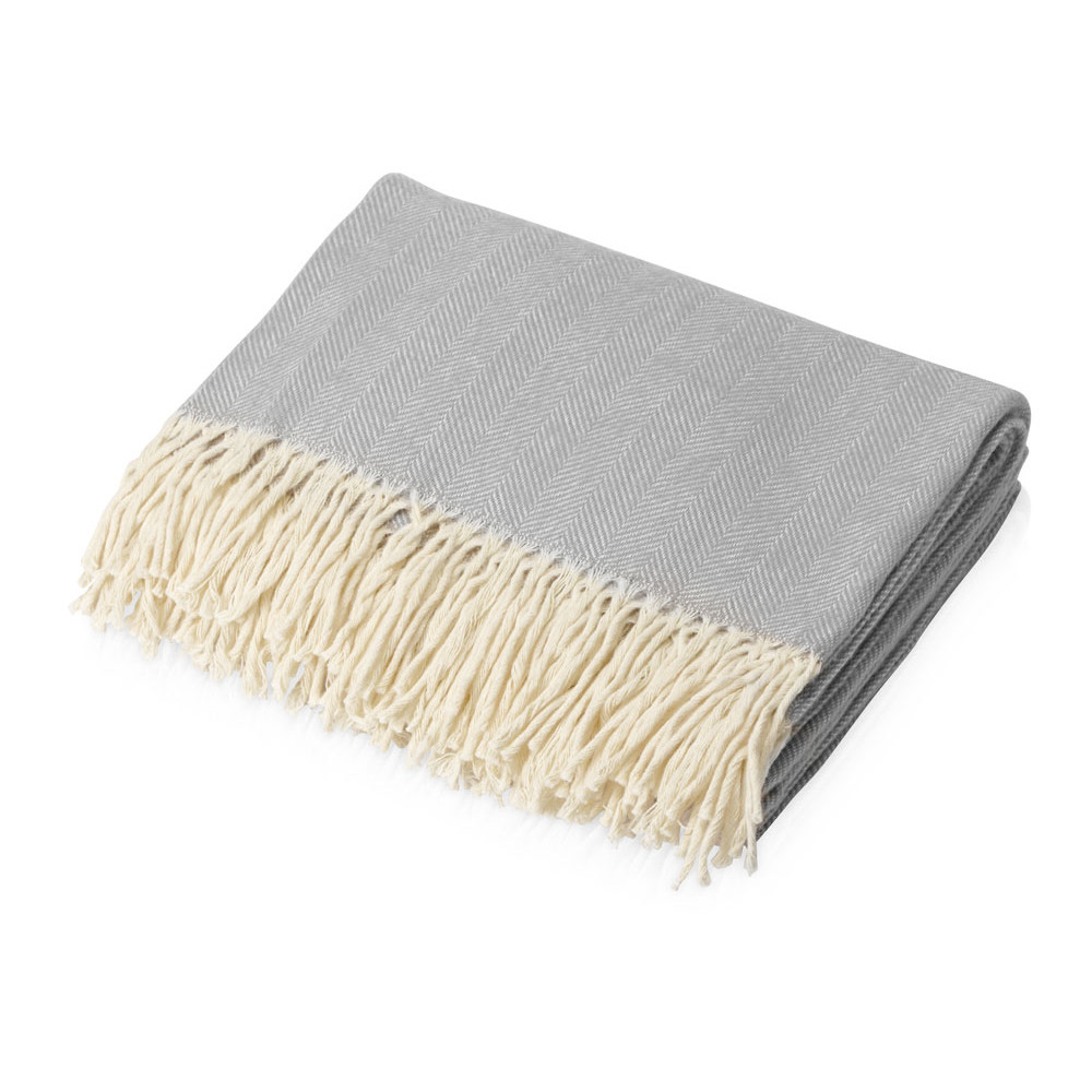 Плотный мягкий плед из натурального хлопка украшен бахромой. Можно использовать как теплое одеяло или как покрывало для украшения интерьера.