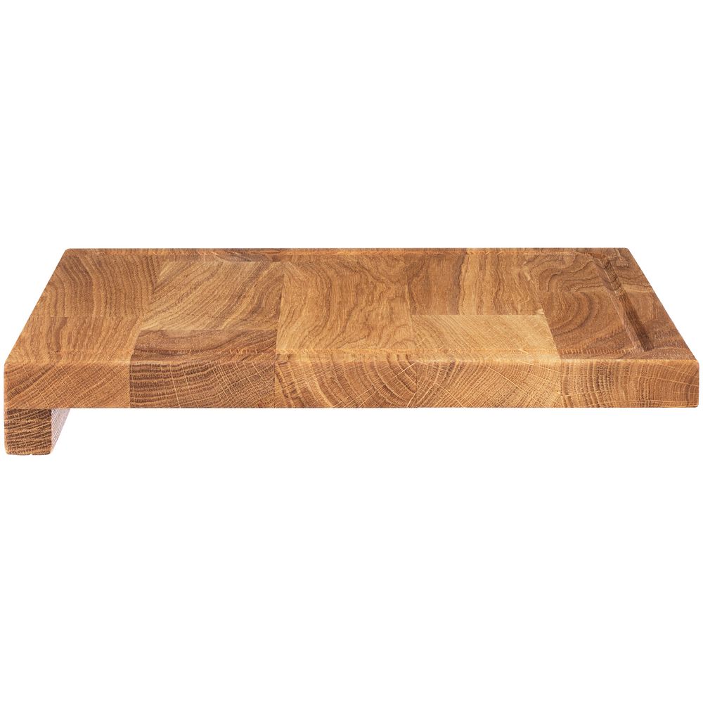 Древесина дуба смотрится благородно — если доску перевернуть упором вверх, то она пригодится не только для нарезки продуктов, но и для сервировки стола.Рекомендуется промывать в мыльной воде после использования и насухо вытирать после мытья. Не замачивать, держать в сухом месте.