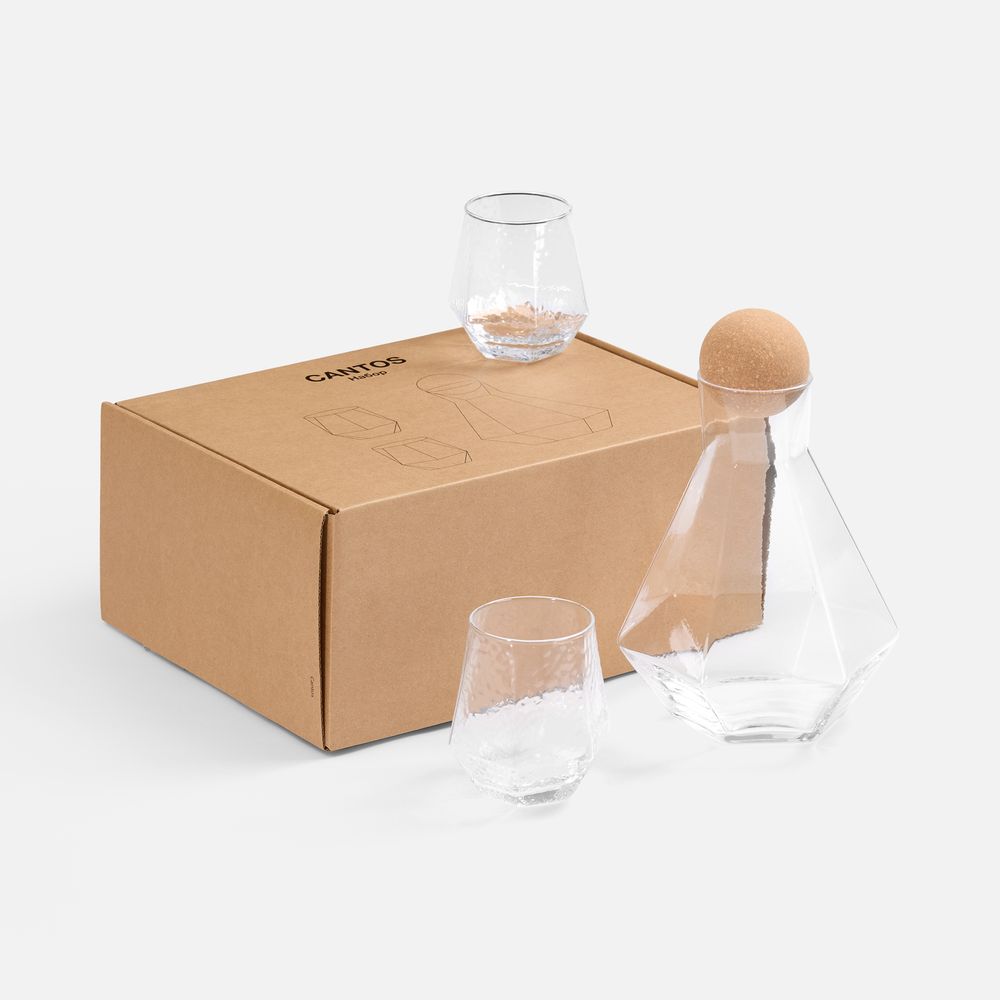 Графин из боросиликатного стекла отличается высокой термостойкостью и долговечностью, гарантируя надежность при ежедневном использовании. Стаканы, выполненные из закаленного стекла, сочетают в себе прочность и изящество, сохраняя прозрачность и устойчивость к ударам. В комплекте также предусмотрена крышка в виде шара из натуральной пробки, которая гармонично дополняет общий дизайн и обеспечивает защиту напитка от пыли и выветривания.
